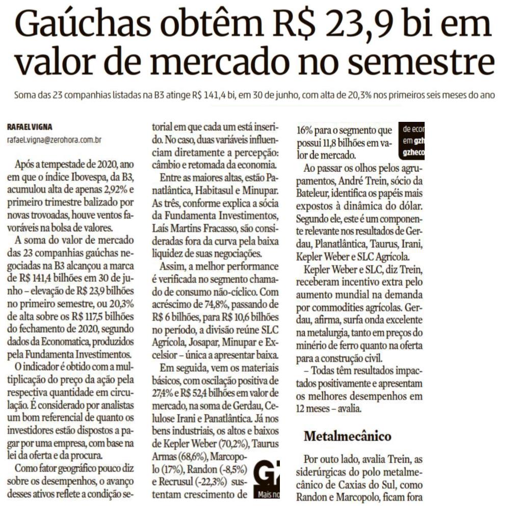Gaúchas obtêm RS 23,9 bi em valor de mercado no semestre
