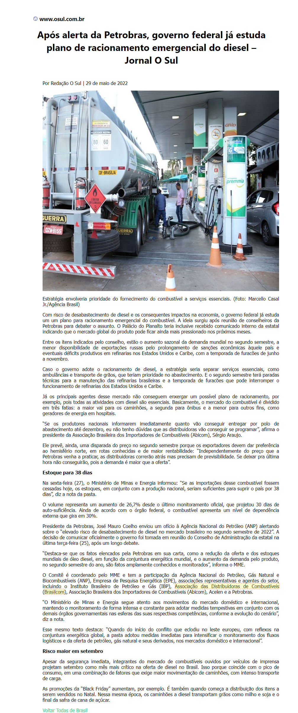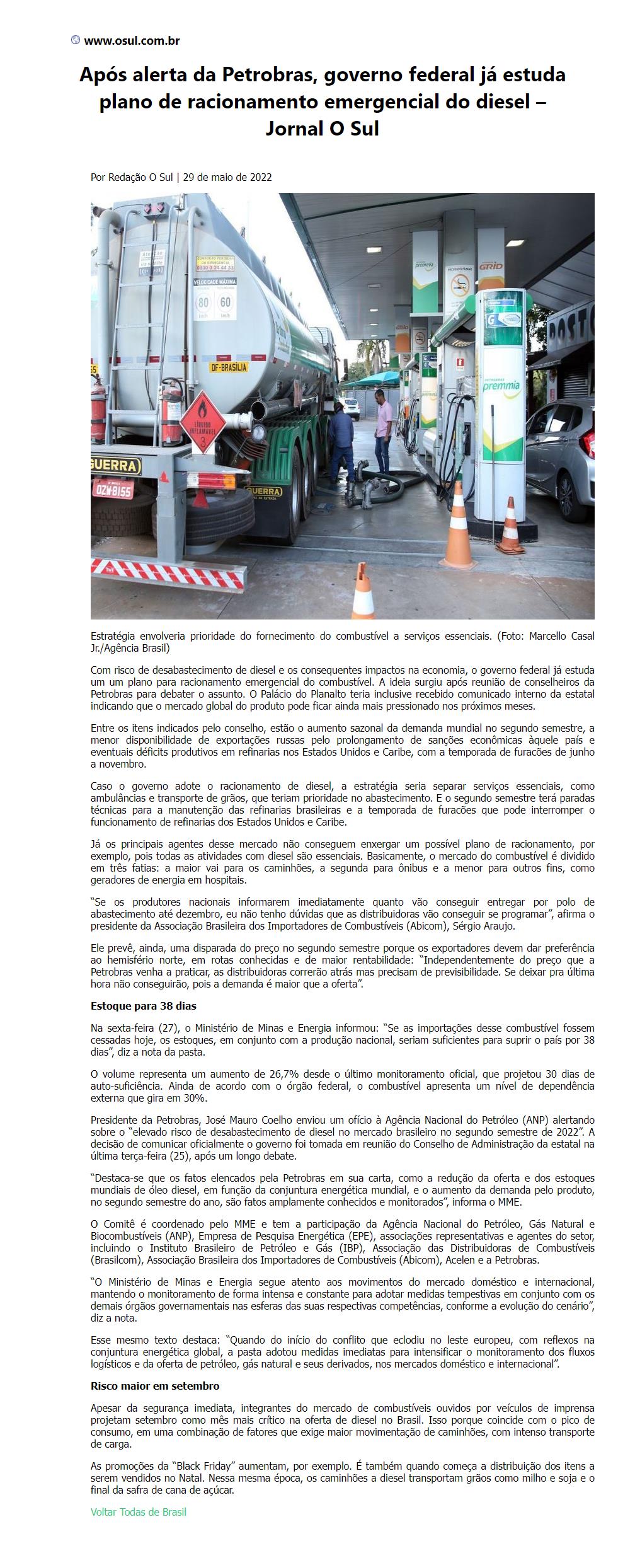 Após alerta da Petrobras, governo federal já estuda plano de racionamento emergencial do diesel
