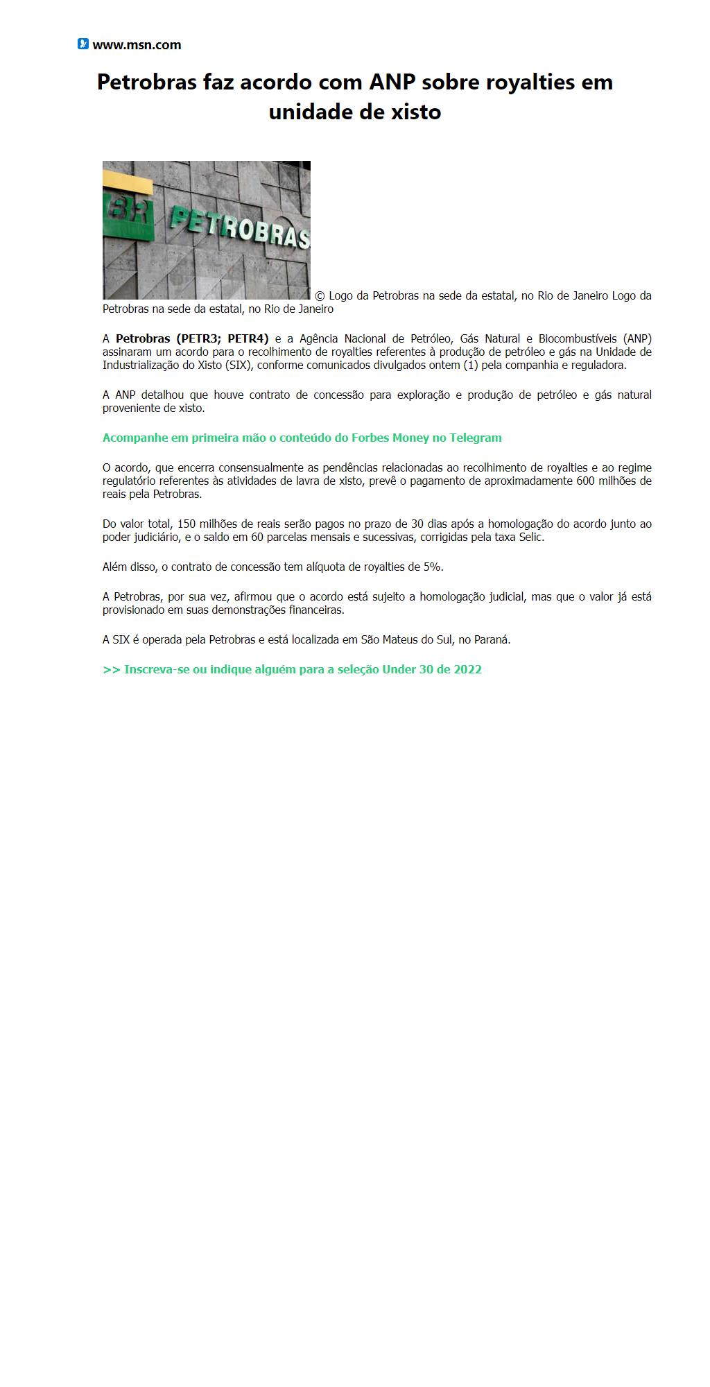 Petrobras faz acordo com ANP sobre royalties em unidade de xisto