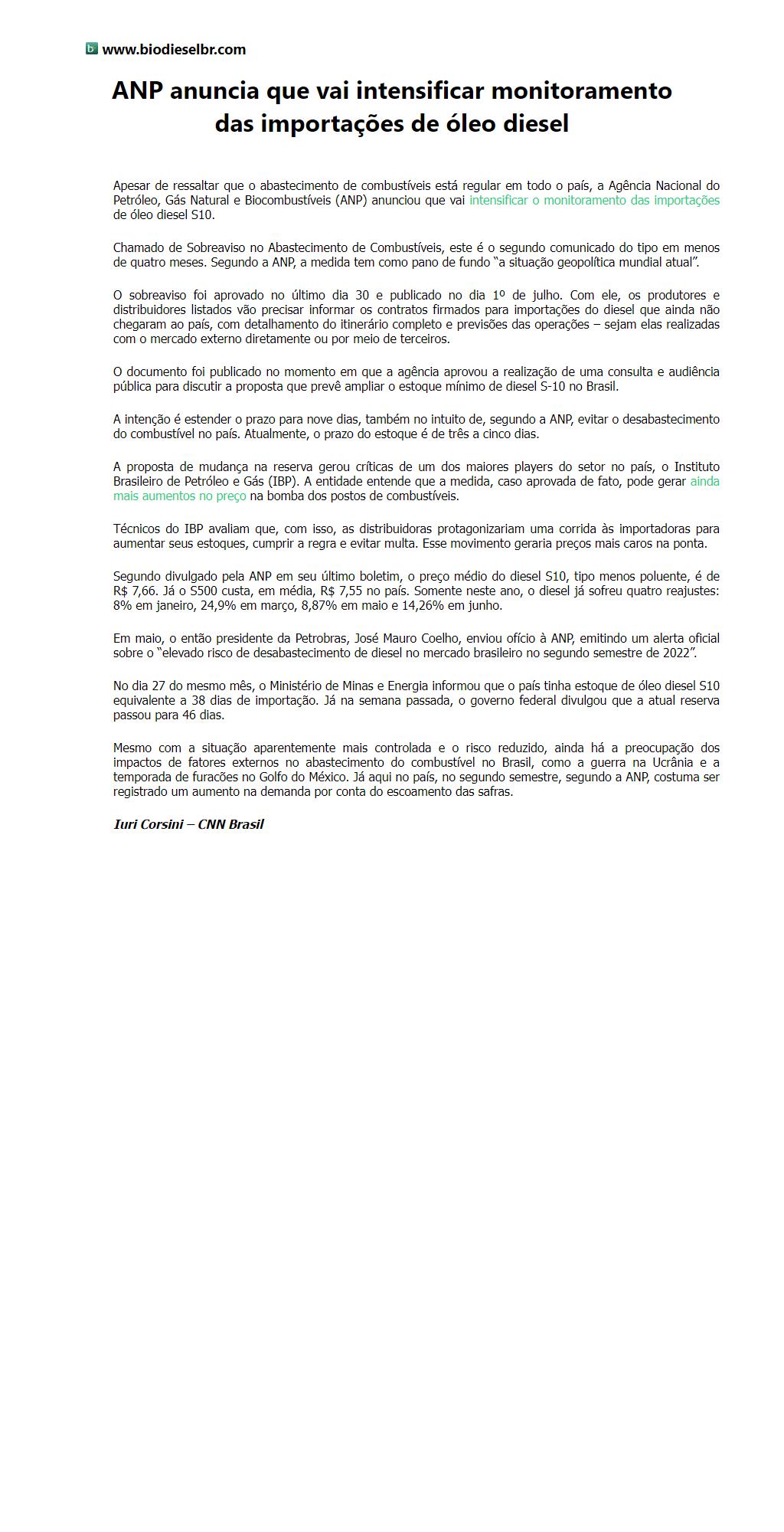 ANP anuncia que vai intensificar monitoramento das importações de óleo diesel