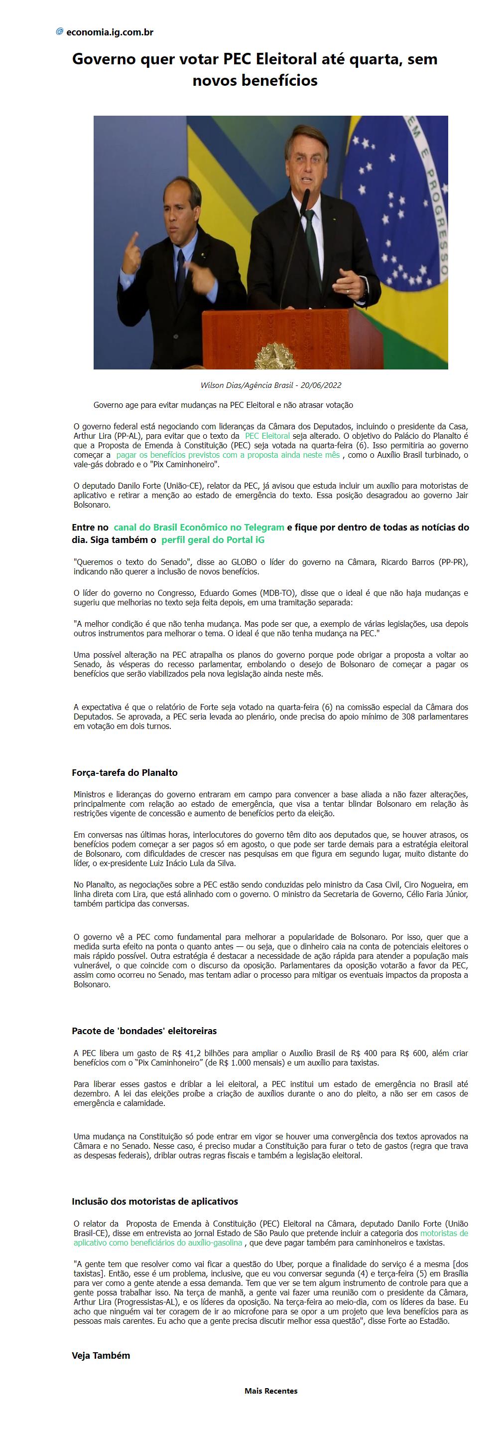 Governo quer votar PEC Eleitoral até quarta, sem novos benefícios
