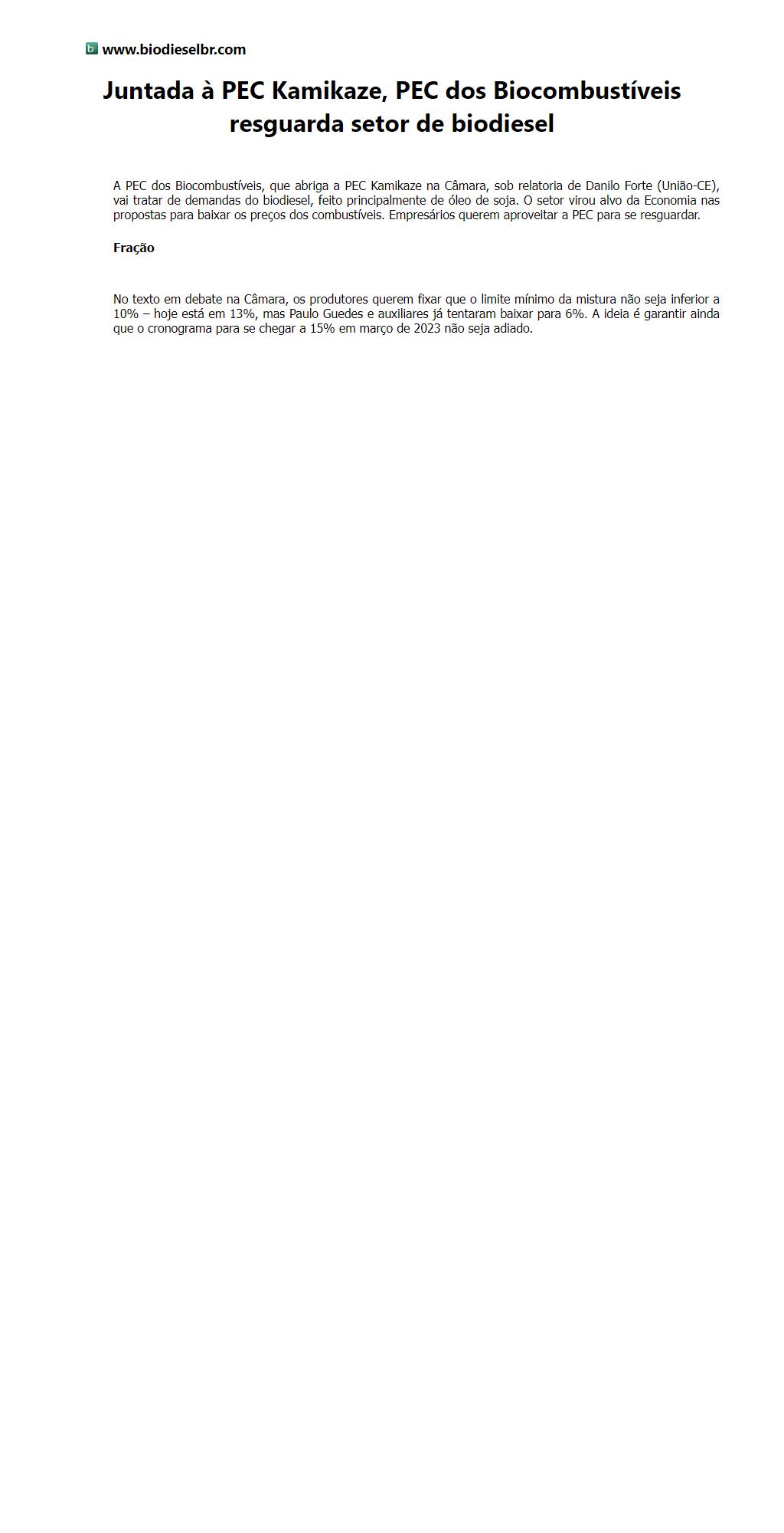 Juntada à PEC Kamikaze, PEC dos Biocombustíveis resguarda setor de biodiesel