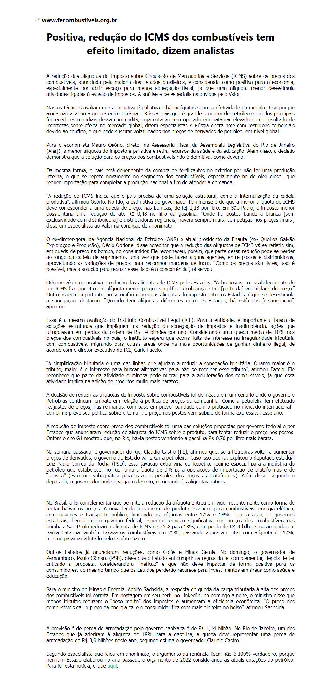 Positiva, redução do ICMS dos combustíveis tem efeito limitado, dizem analistas
