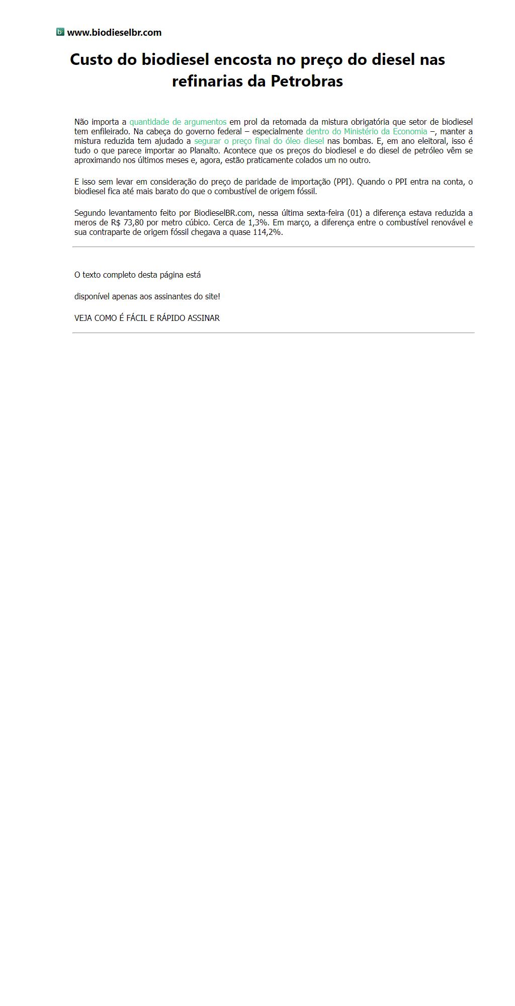 Custo do biodiesel encosta no preço do diesel nas refinarias da Petrobras