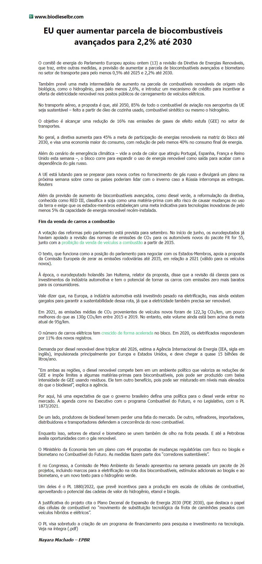 EU quer aumentar parcela de biocombustíveis avançados para 2,2% até 2030