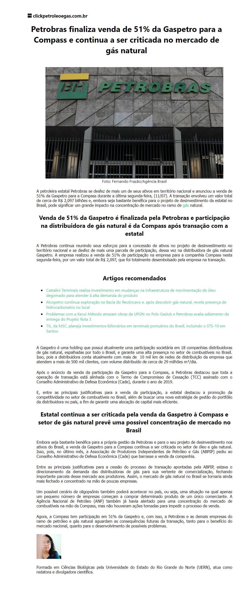 Petrobras finaliza venda de 51% da Gaspetro para a Compass e continua a ser criticada no mercado de gás natural
