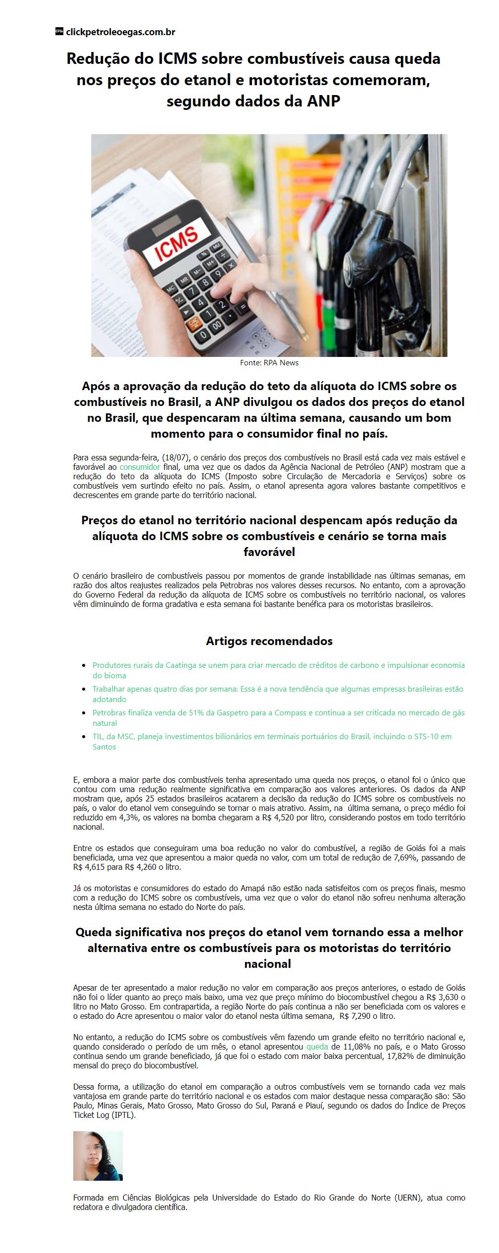 Redução do ICMS sobre combustíveis causa queda nos preços do etanol e motoristas comemoram, segundo dados da ANP