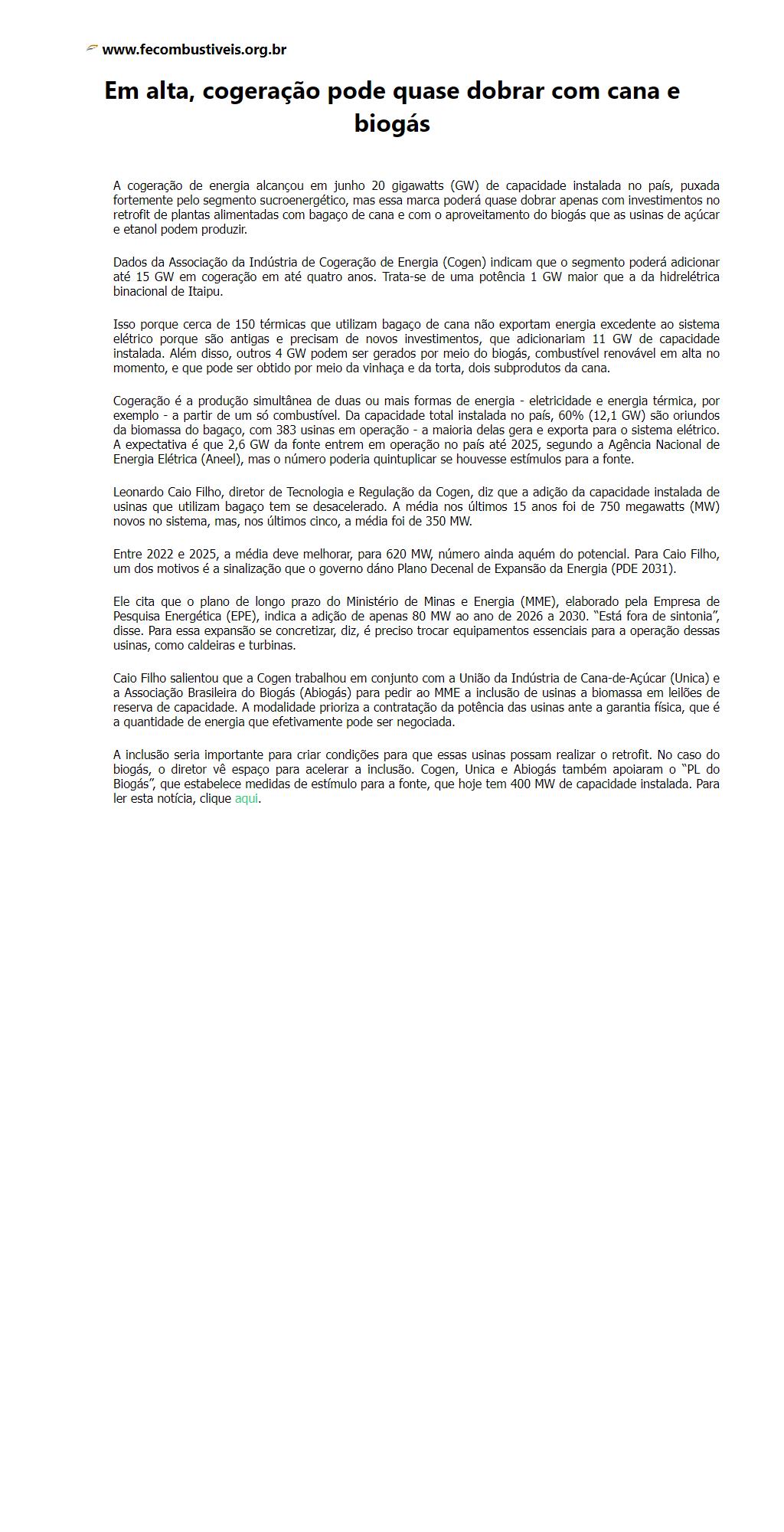 Em alta, cogeração pode quase dobrar com cana e biogás