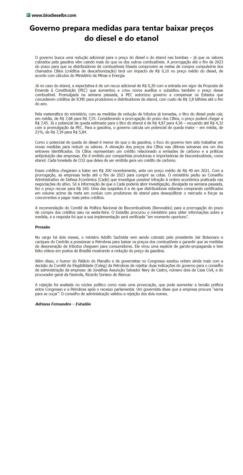 Governo prepara medidas para tentar baixar preços do diesel e do etanol