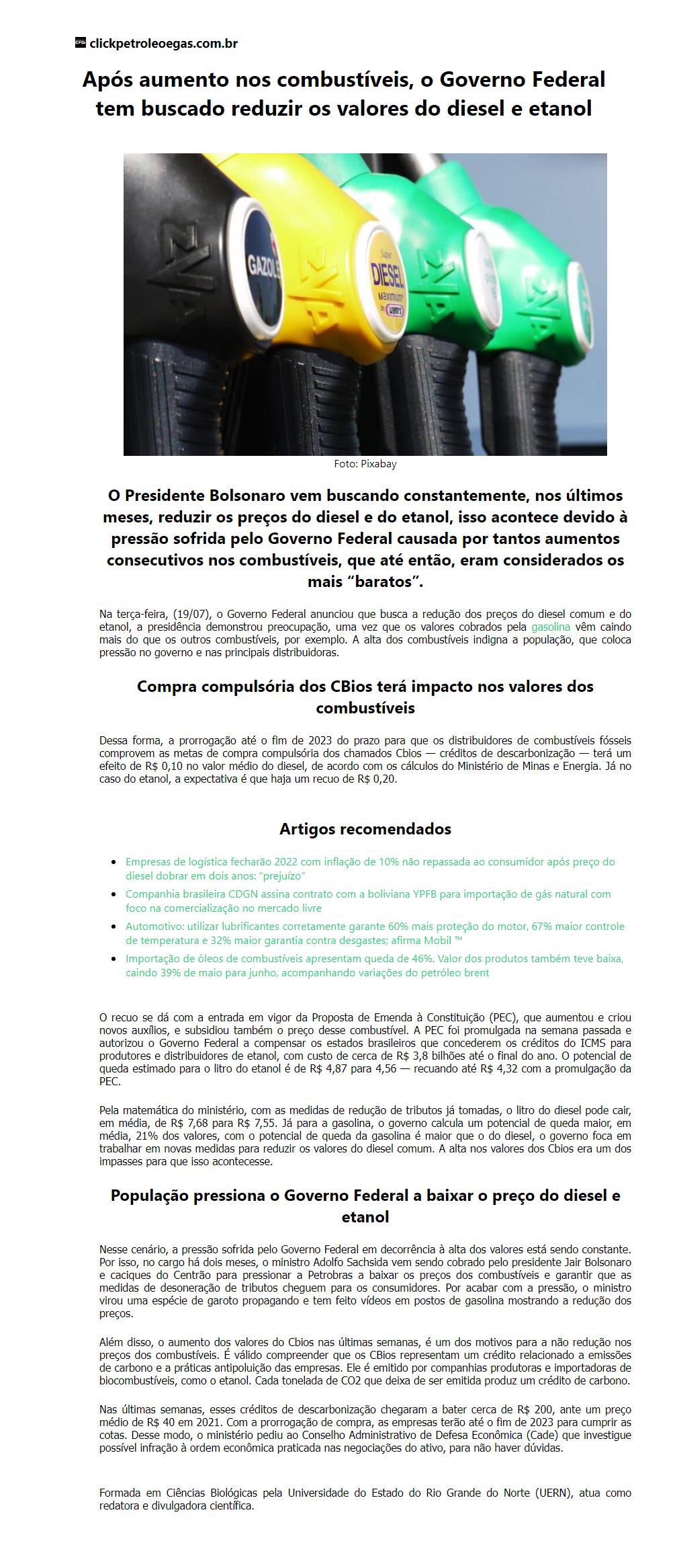 Após aumento nos combustíveis, o Governo Federal tem buscado reduzir os valores do diesel e etanol