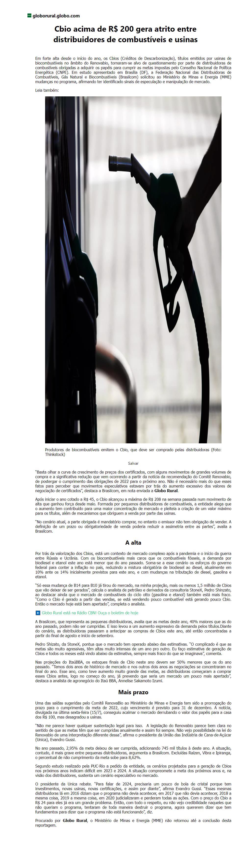 Cbio acima de R$ 200 gera atrito entre distribuidores de combustíveis e usinas