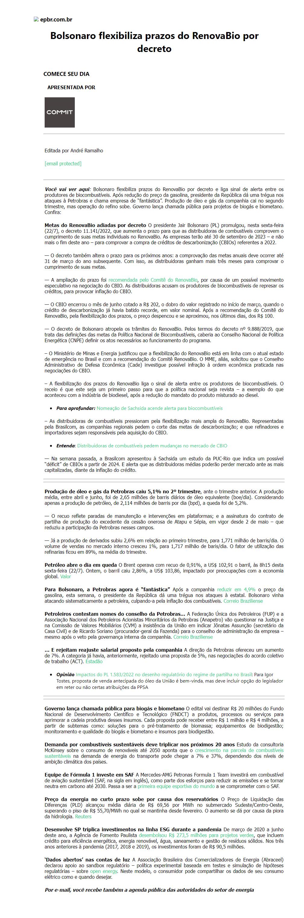 Bolsonaro flexibiliza prazos do RenovaBio por decreto