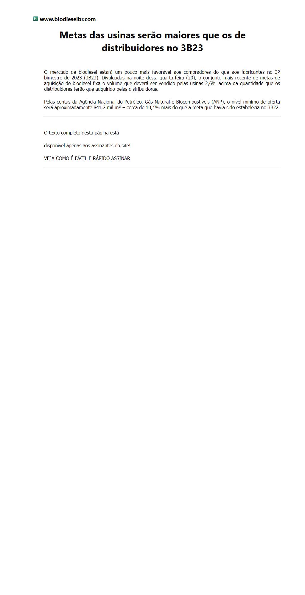 Metas das usinas serão maiores que os de distribuidores no 3B23
