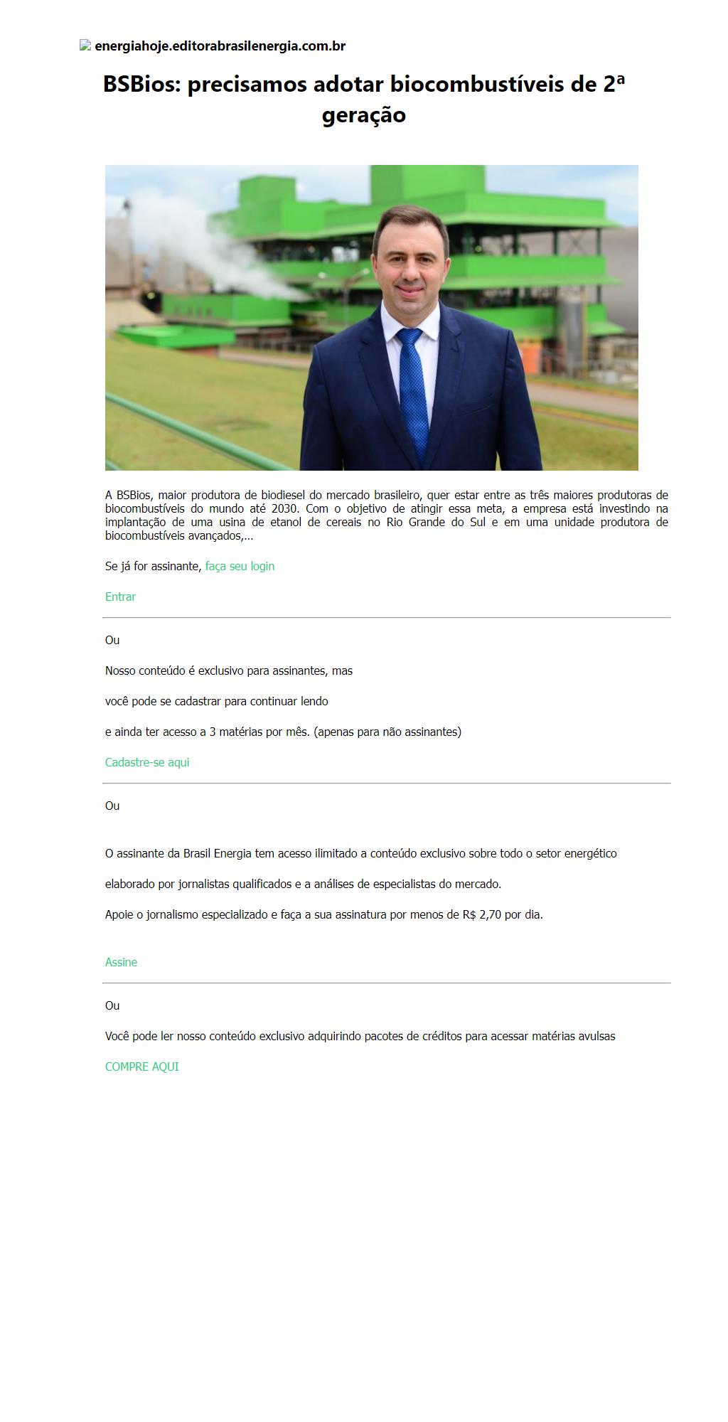 BSBios: precisamos adotar biocombustíveis de 2ª geração