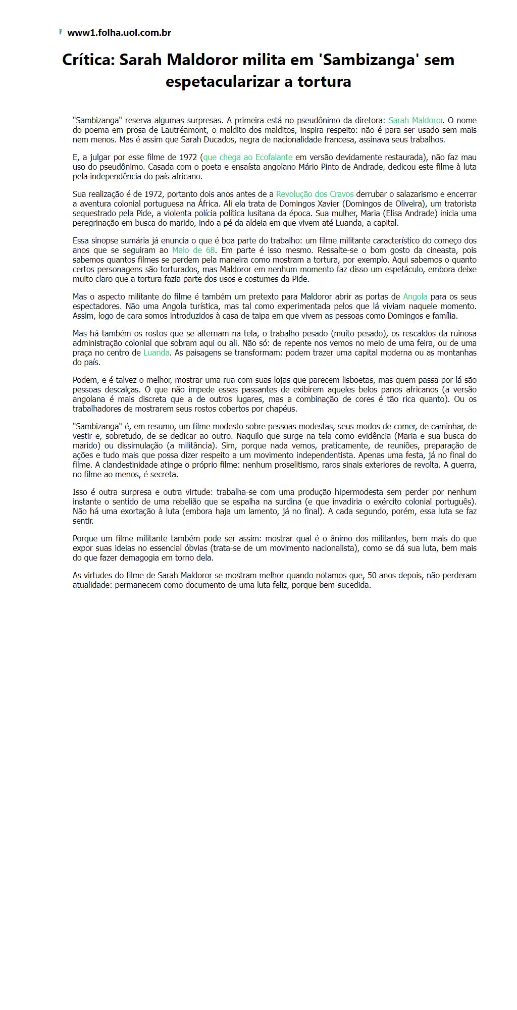 Sarah Maldoror milita em 'Sambizanga' sem espetacularizar a tortura