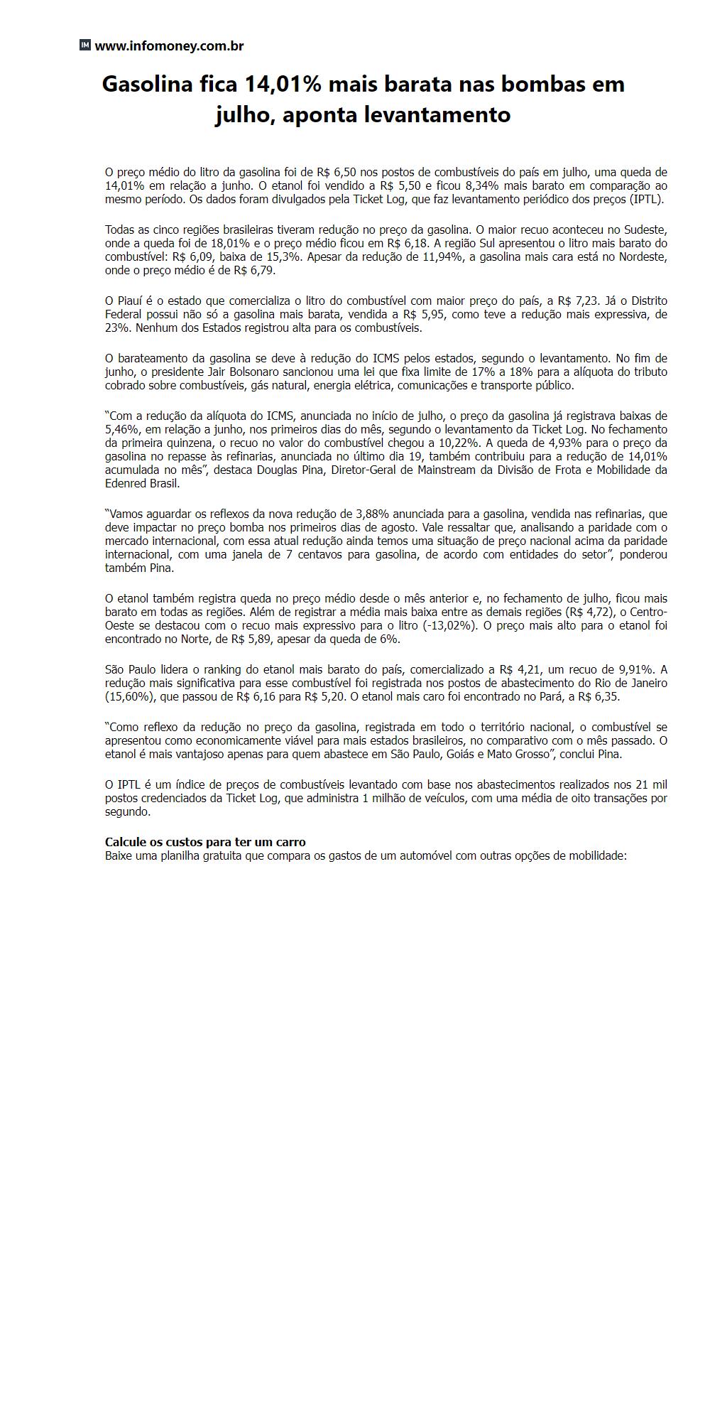 Gasolina fica 14,01% mais barata nas bombas em julho, aponta levantamento