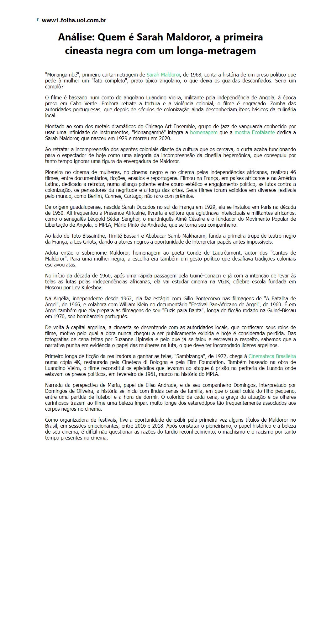 Quem é Sarah Maldoror, a primeira cineasta negra com um longa-metragem