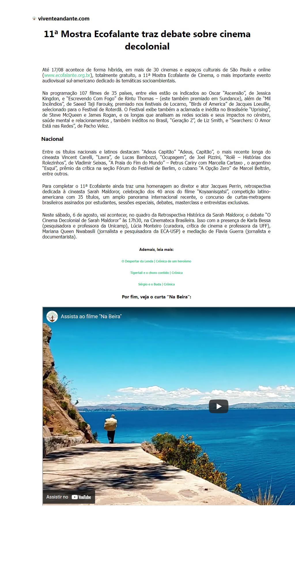 11ª Mostra Ecofalante traz debate sobre cinema decolonial