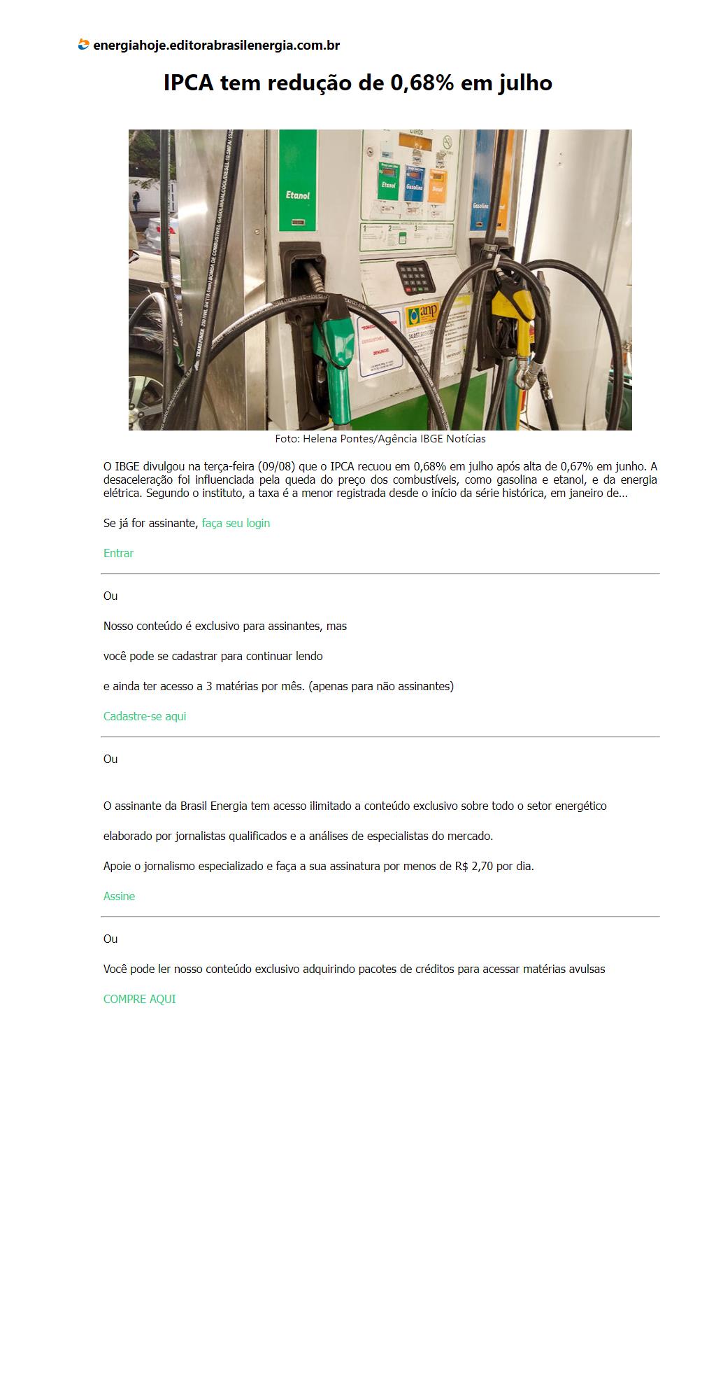 IPCA tem redução de 0,68% em julho