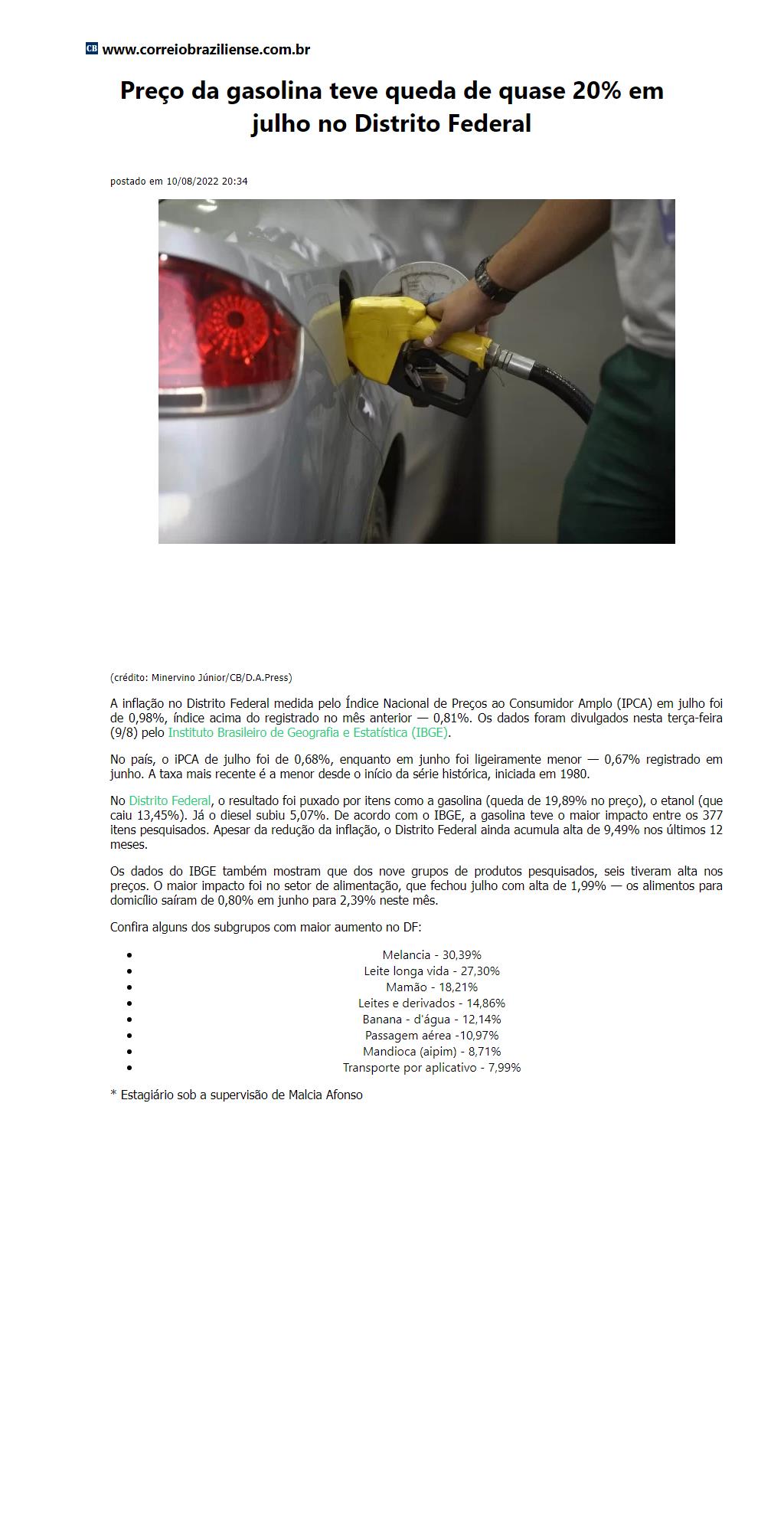 Preço da gasolina teve queda de quase 20% em julho no Distrito Federal