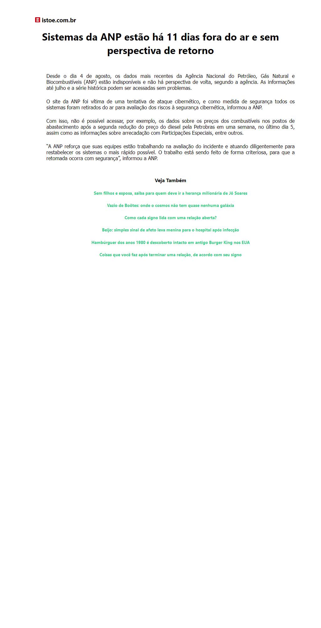 Sistemas da ANP estão há 11 dias fora do ar e sem perspectiva de retorno
