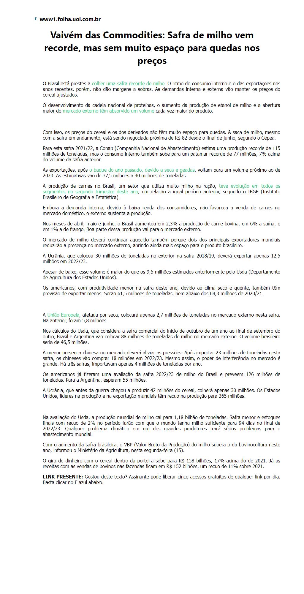Safra de milho vem recorde, mas sem muito espaço para quedas nos preços