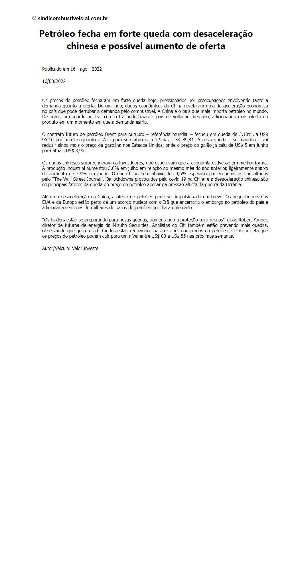 Petróleo fecha em forte queda com desaceleração chinesa e possível aumento de oferta
