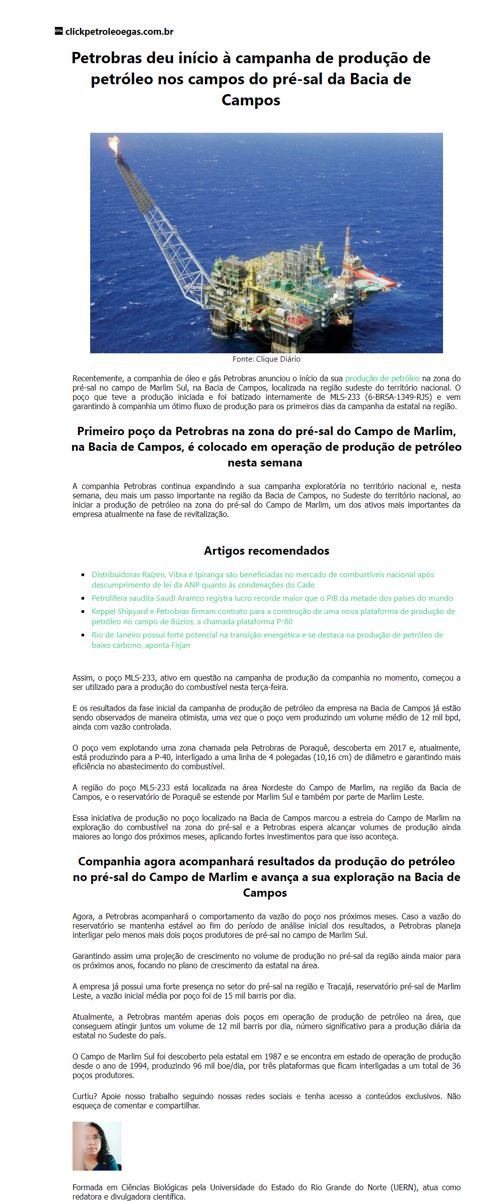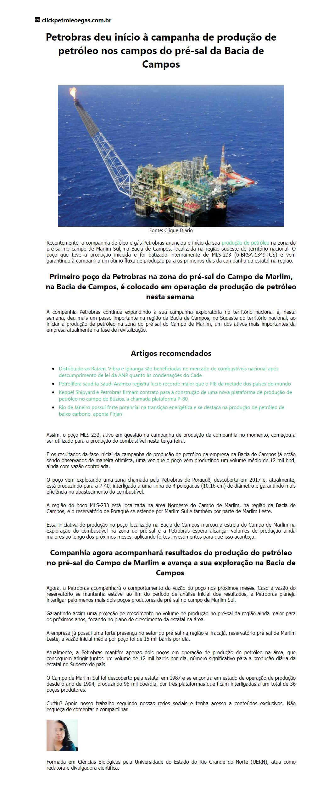 Petrobras deu início à campanha de produção de petróleo nos campos do pré-sal da Bacia de Campos