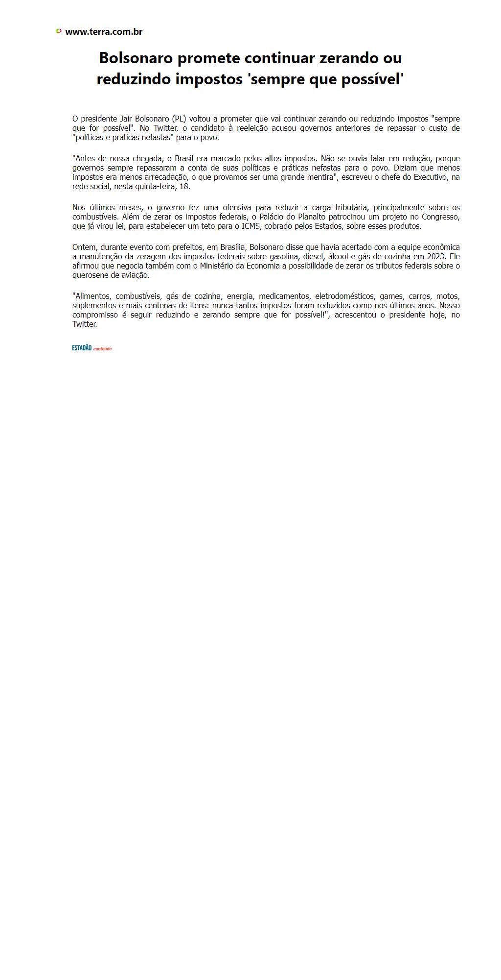 Bolsonaro promete continuar zerando ou reduzindo impostos 'sempre que possível'