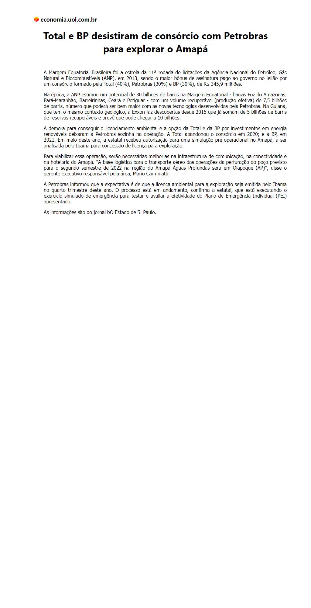 Total e BP desistiram de consórcio com Petrobras para explorar o Amapá
