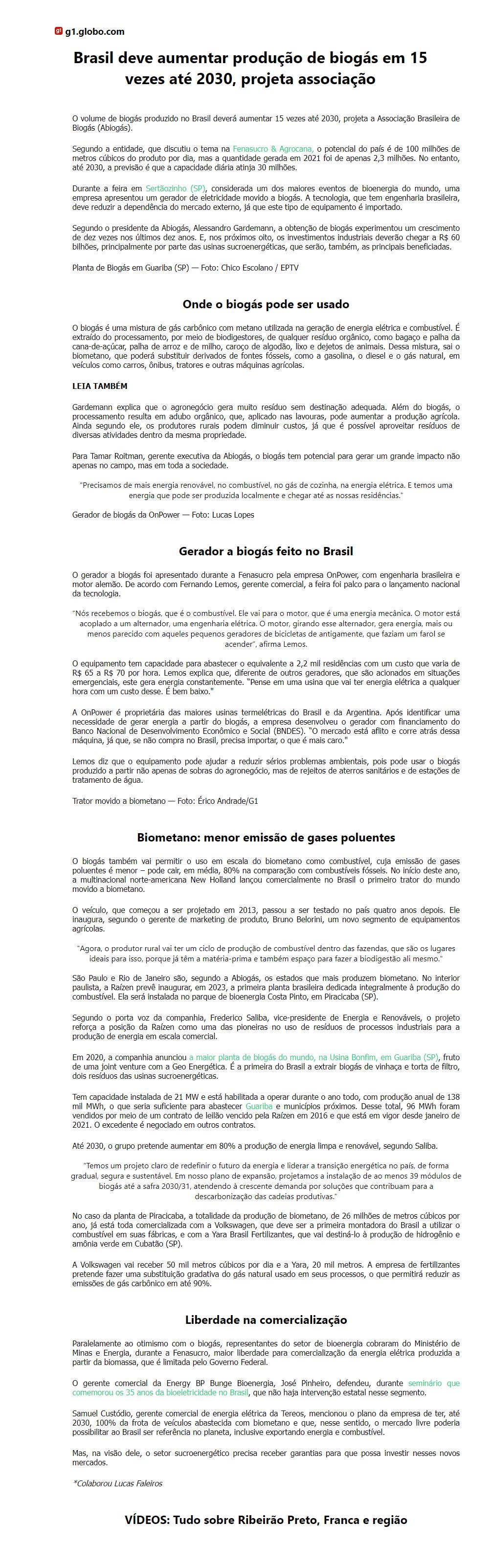 Brasil deve aumentar produção de biogás em 15 vezes até 2030, projeta associação