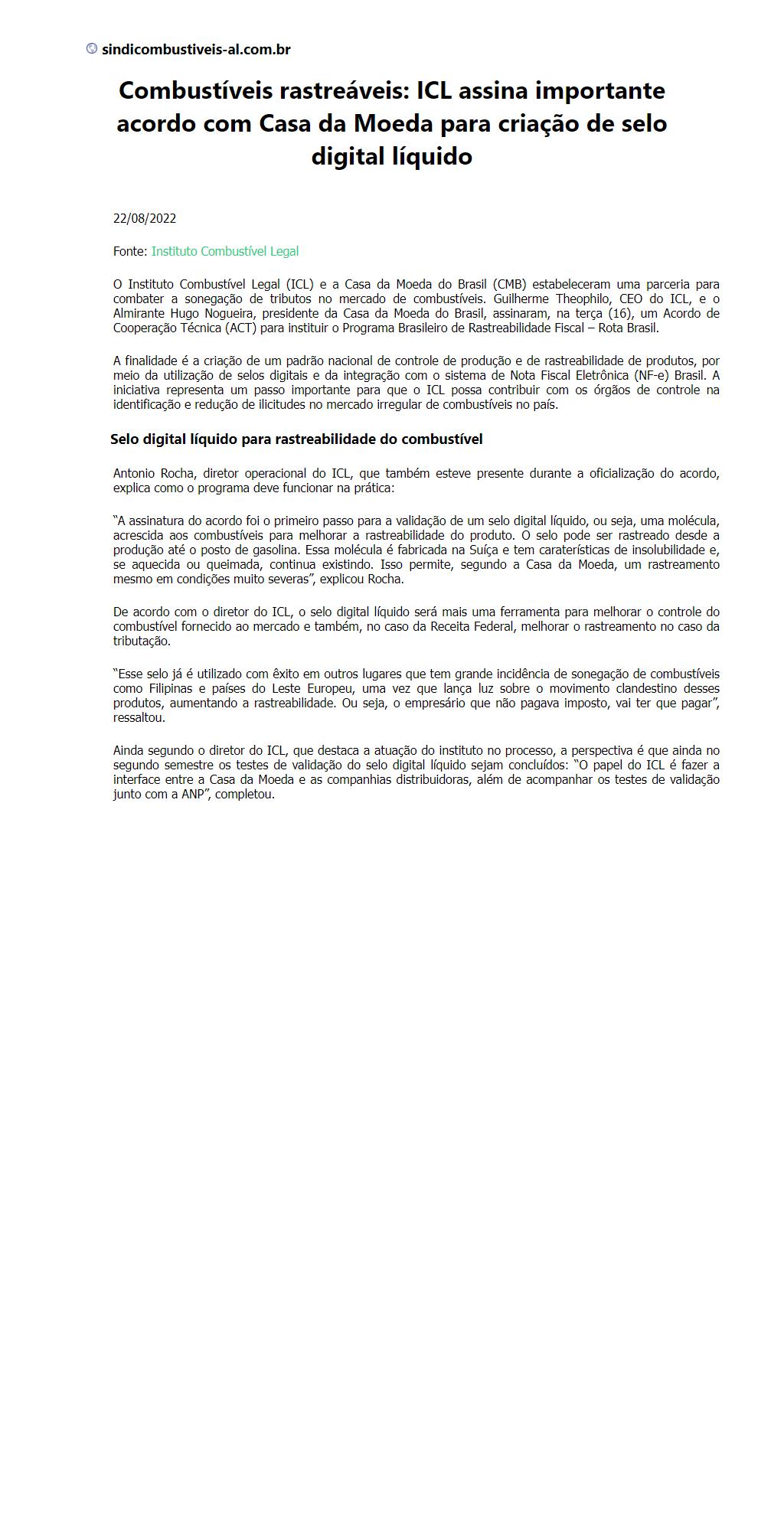Combustíveis rastreáveis: ICL assina importante acordo com Casa da Moeda para criação de selo digital líquido