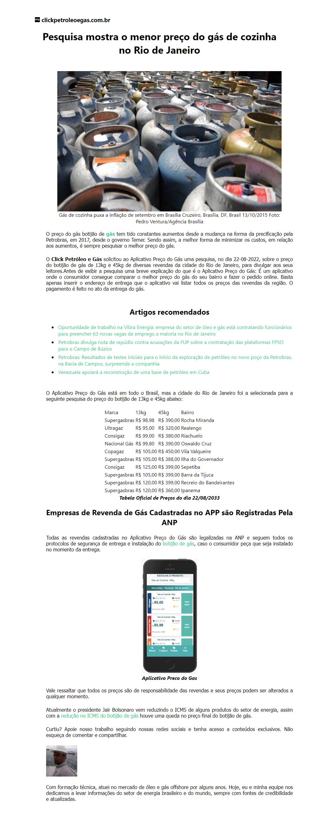 Pesquisa mostra o menor preço do gás de cozinha no Rio de Janeiro