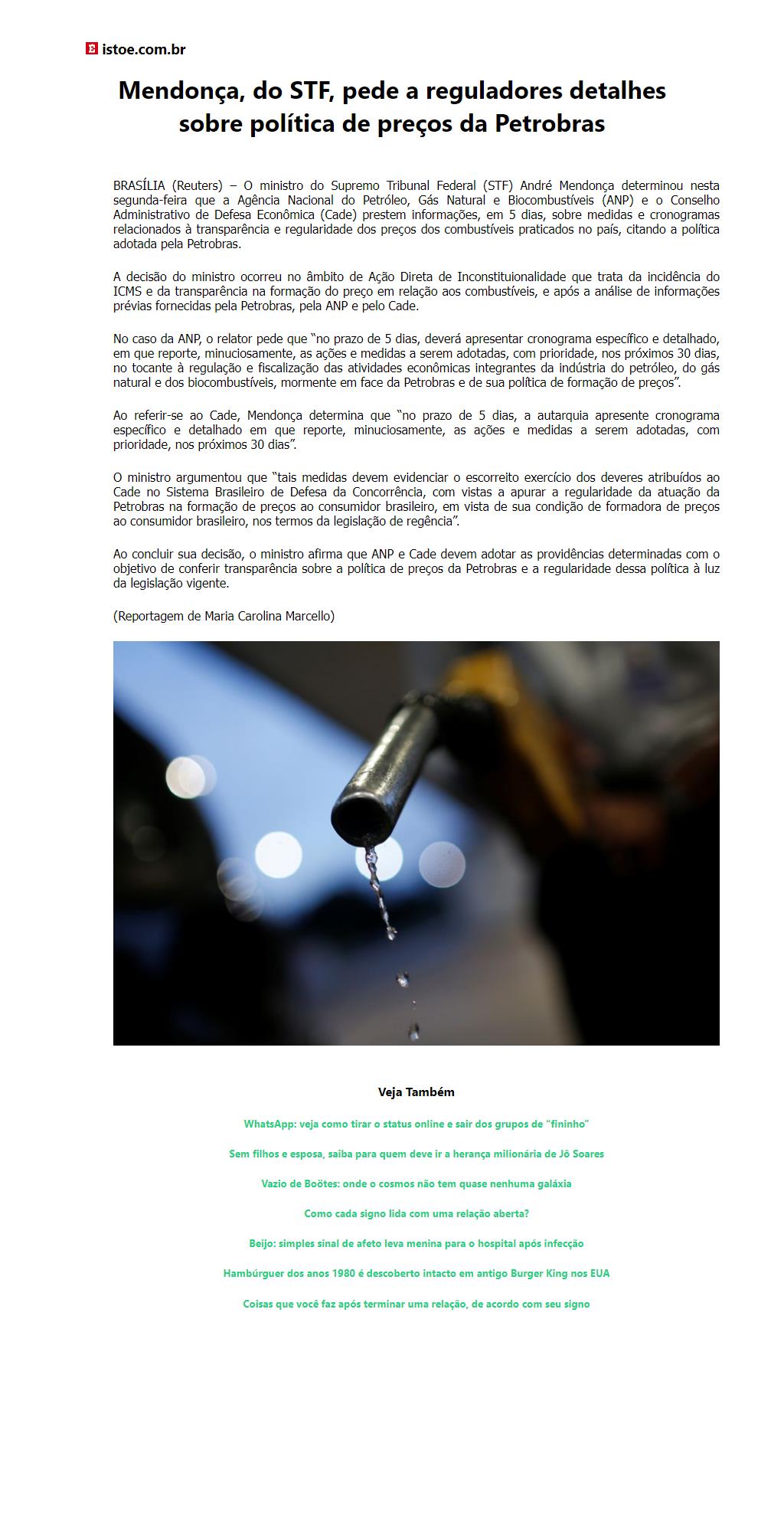 Mendonça, do STF, pede a reguladores detalhes sobre política de preços da Petrobras