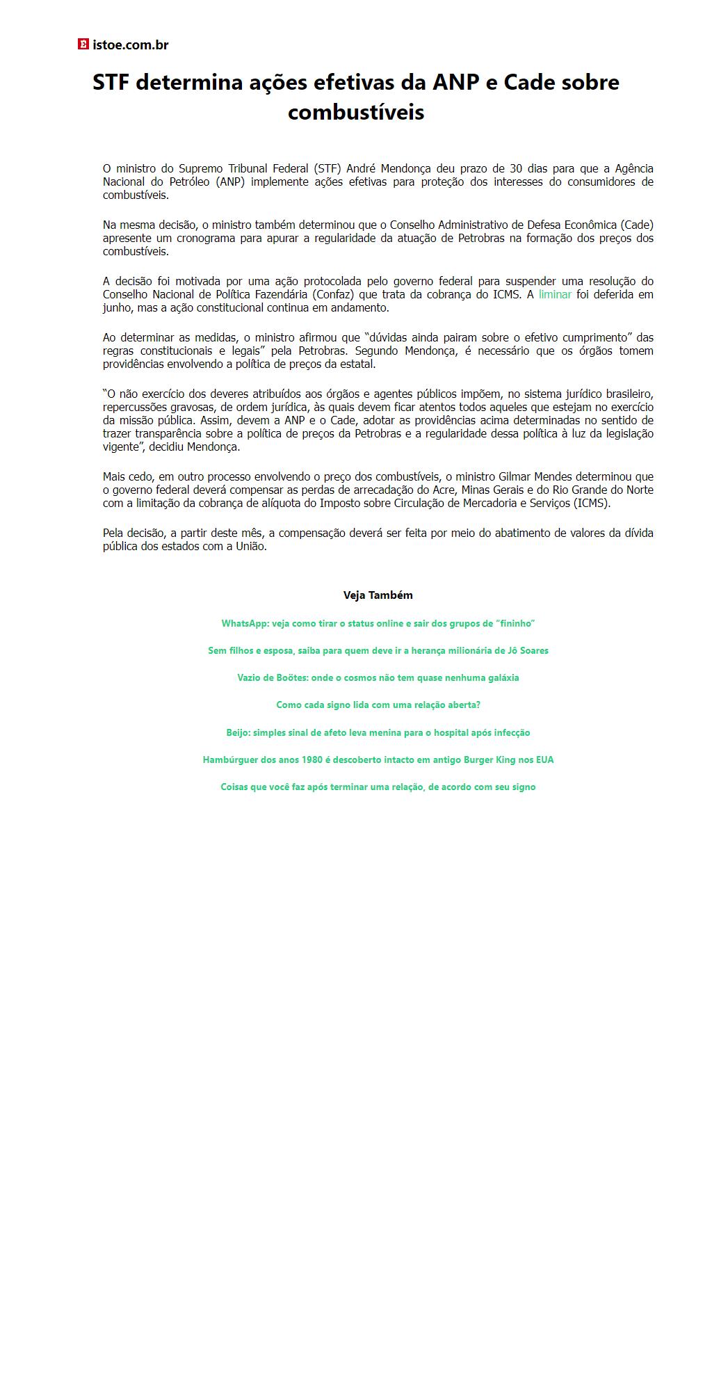 STF determina ações efetivas da ANP e Cade sobre combustíveis