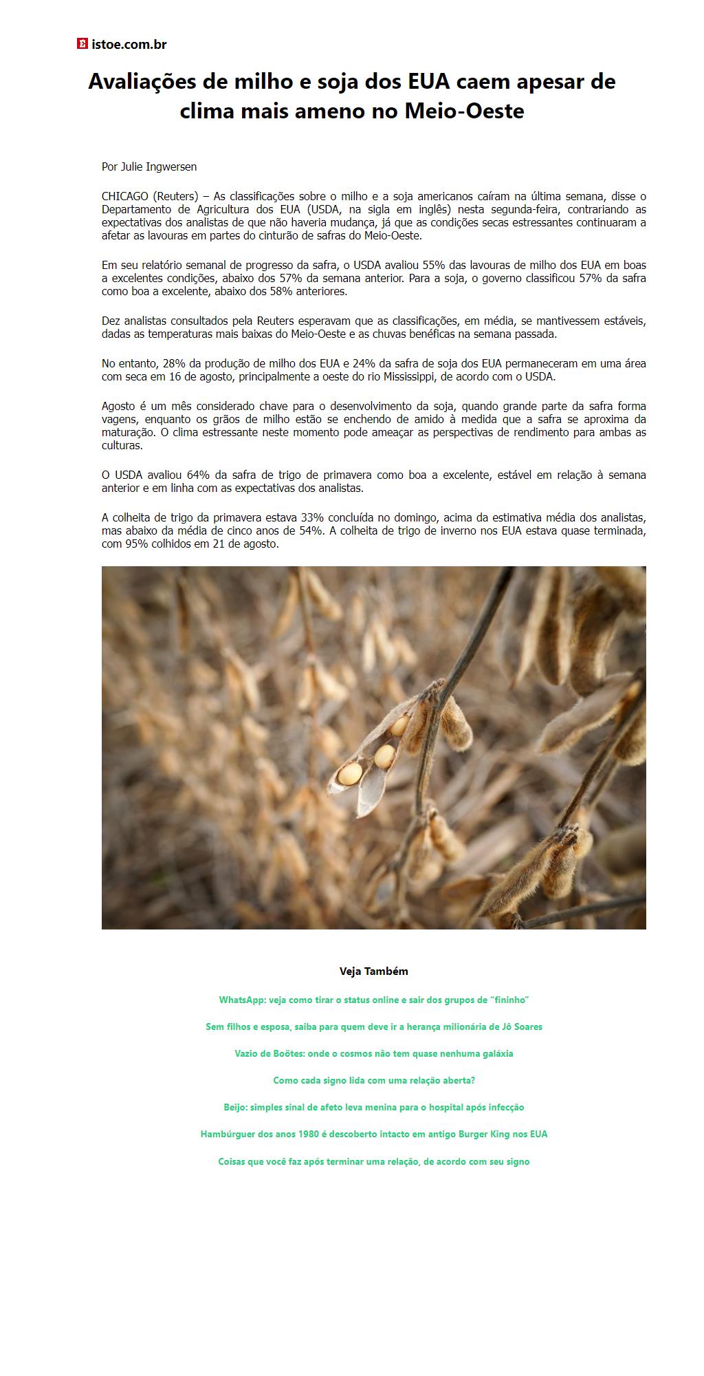Avaliações de milho e soja dos EUA caem apesar de clima mais ameno no Meio-Oeste