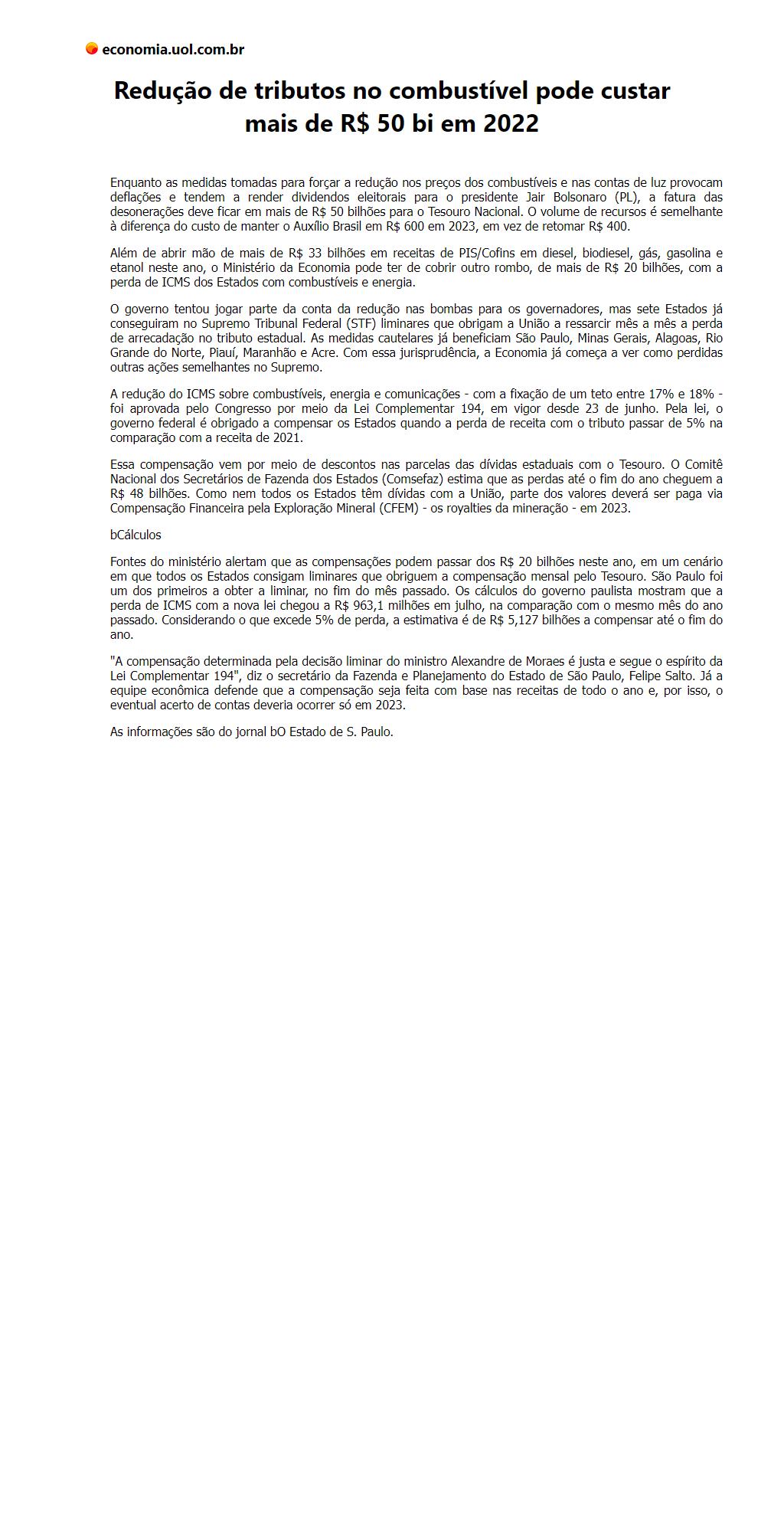 Redução de tributos no combustível pode custar mais de R$ 50 bi em 2022