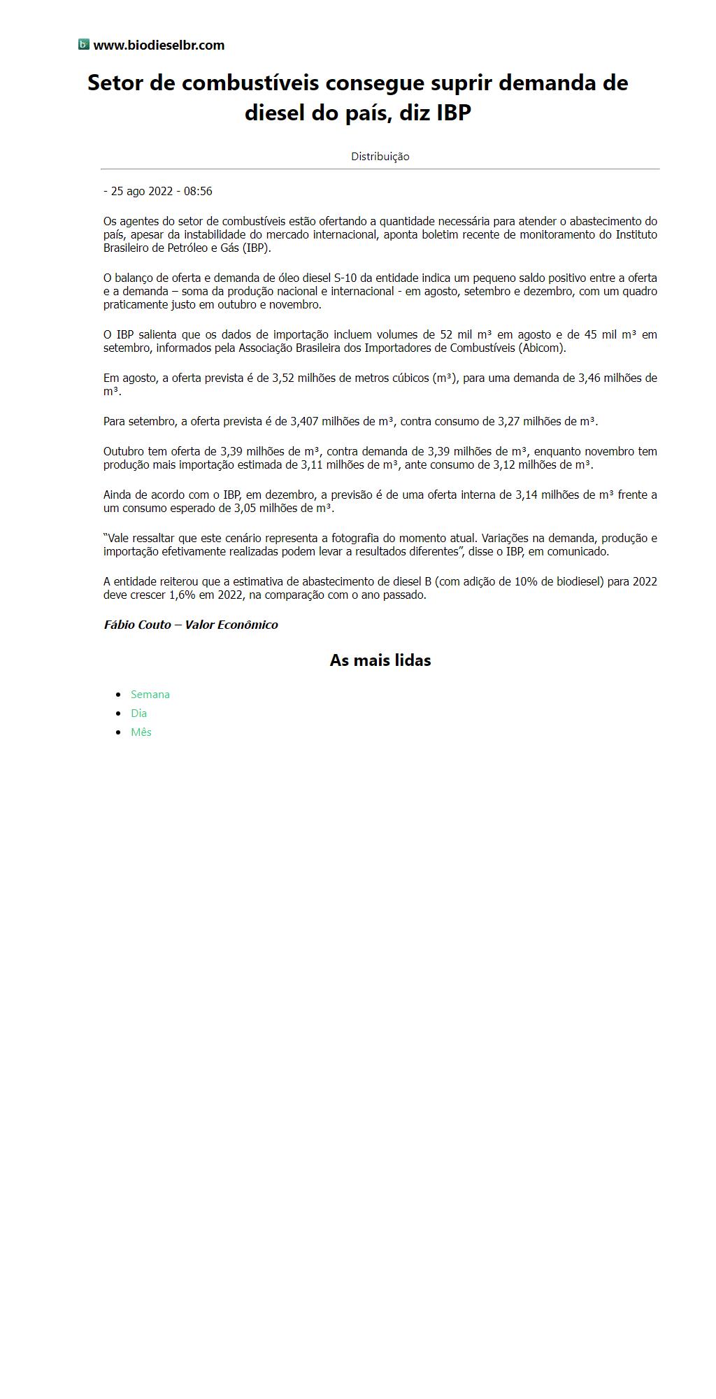 Setor de combustíveis consegue suprir demanda de diesel do país, diz IBP