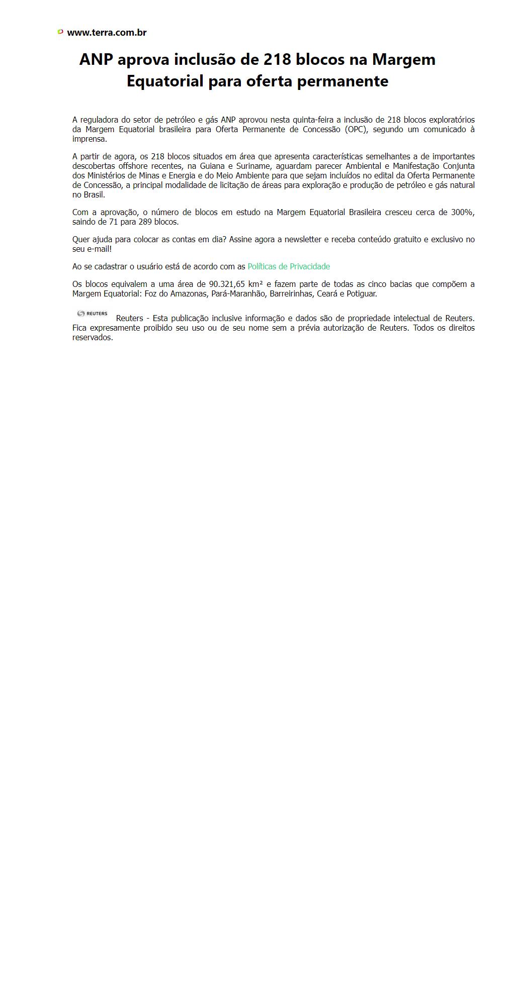 ANP aprova inclusão de 218 blocos na Margem Equatorial para oferta permanente