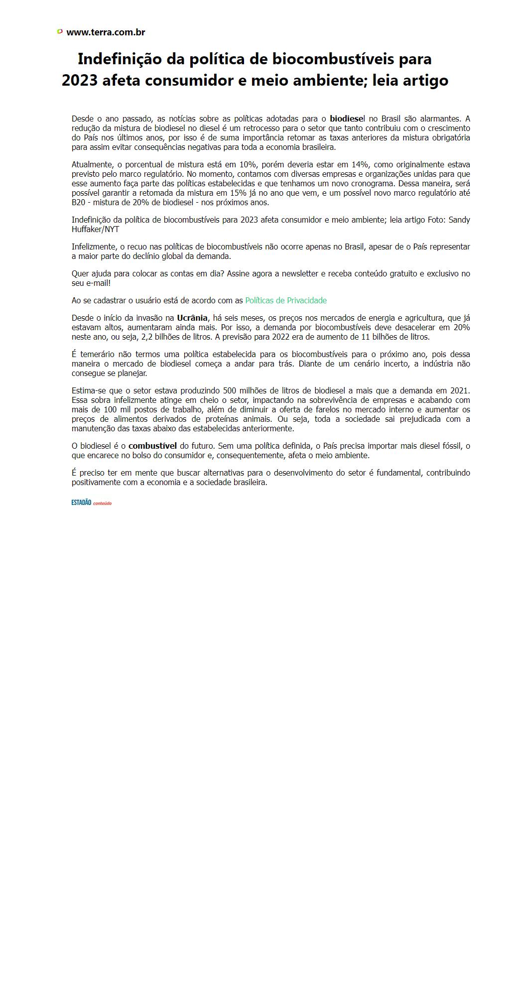 Indefinição da política de biocombustíveis para 2023 afeta consumidor e meio ambiente; leia artigo
