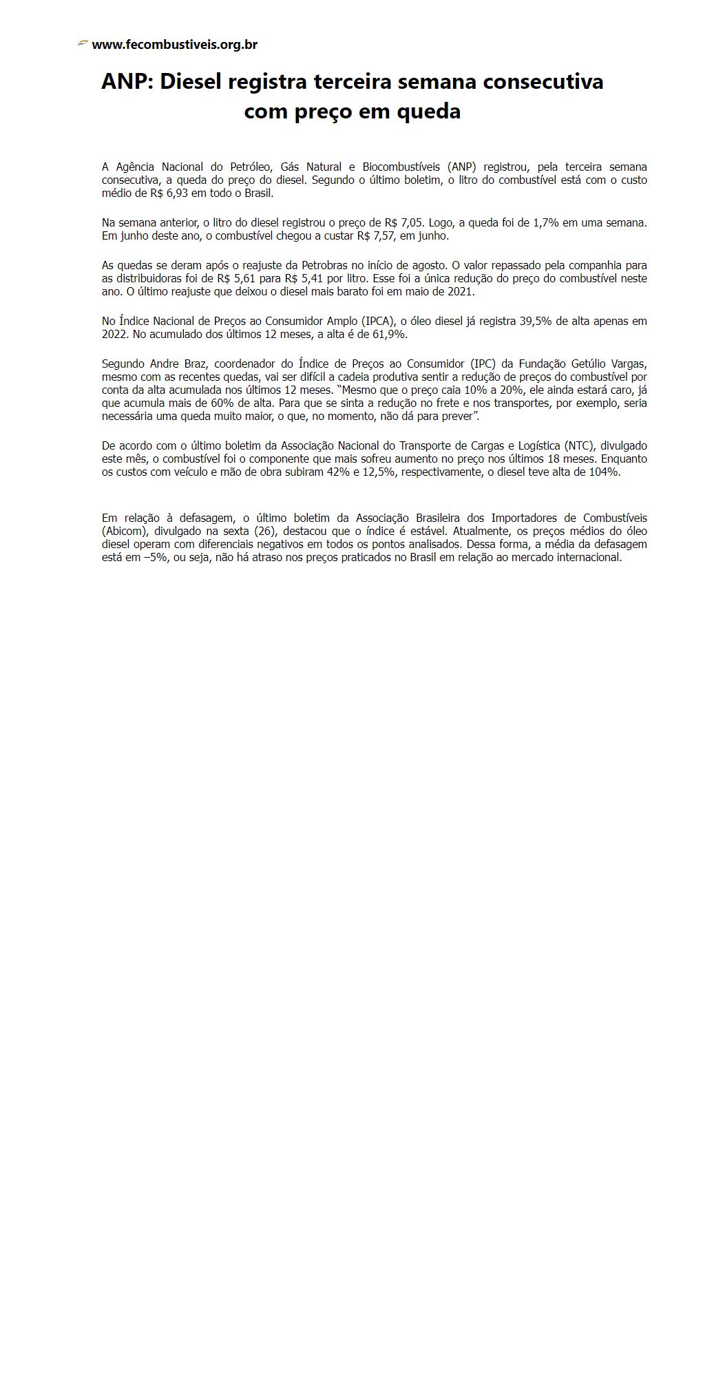 ANP: Diesel registra terceira semana consecutiva com preço em queda
