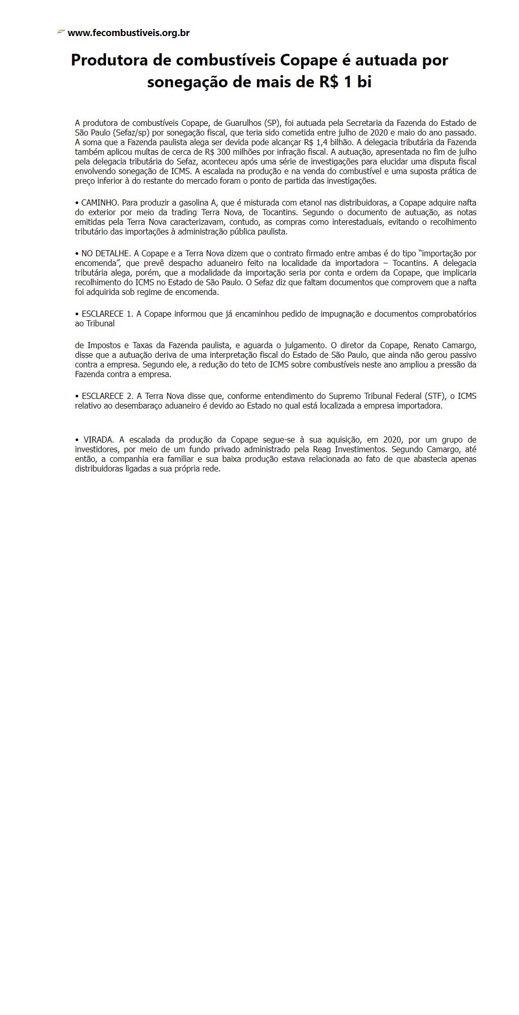 Produtora de combustíveis Copape é autuada por sonegação de mais de R$ 1 bi