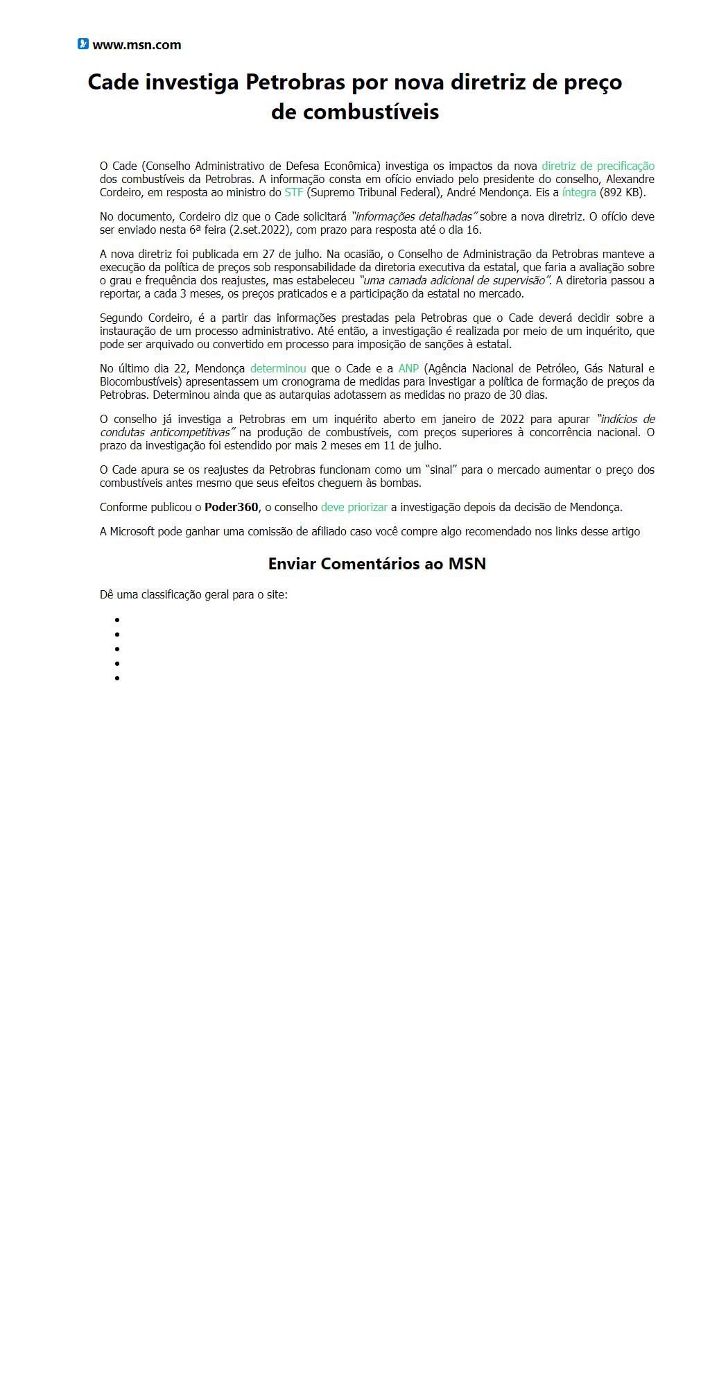Cade investiga Petrobras por nova diretriz de preço de combustíveis