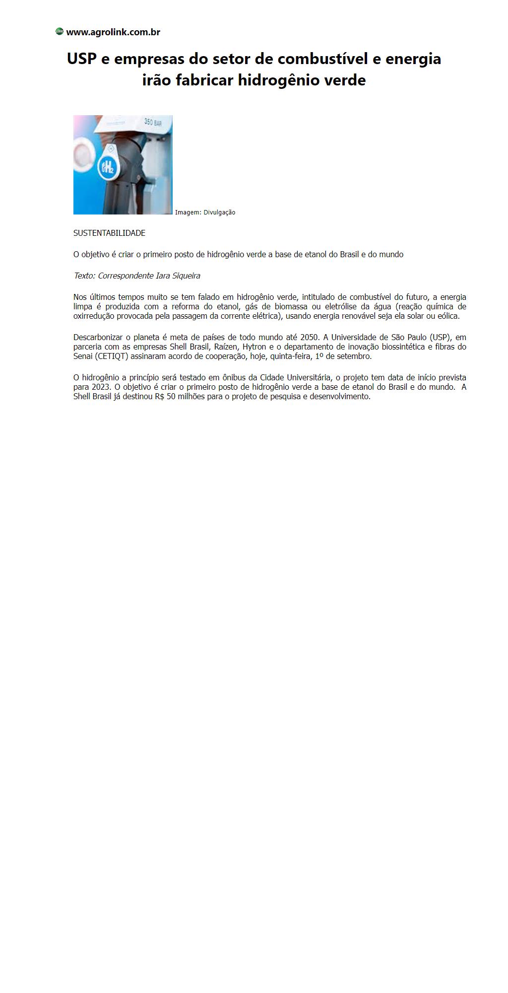 USP e empresas do setor de combustível e energia irão fabricar hidrogênio verde