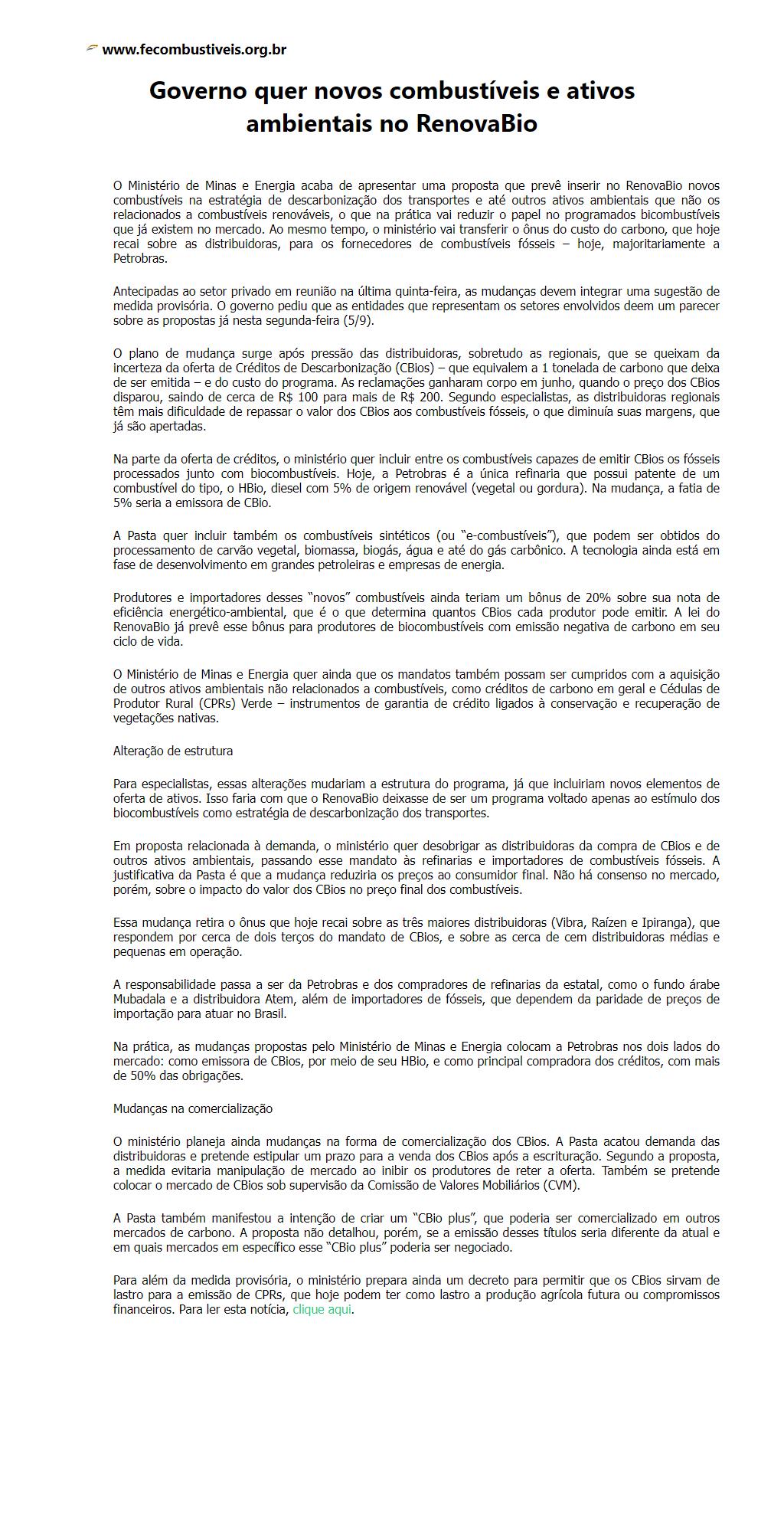 Governo quer novos combustíveis e ativos ambientais no RenovaBio