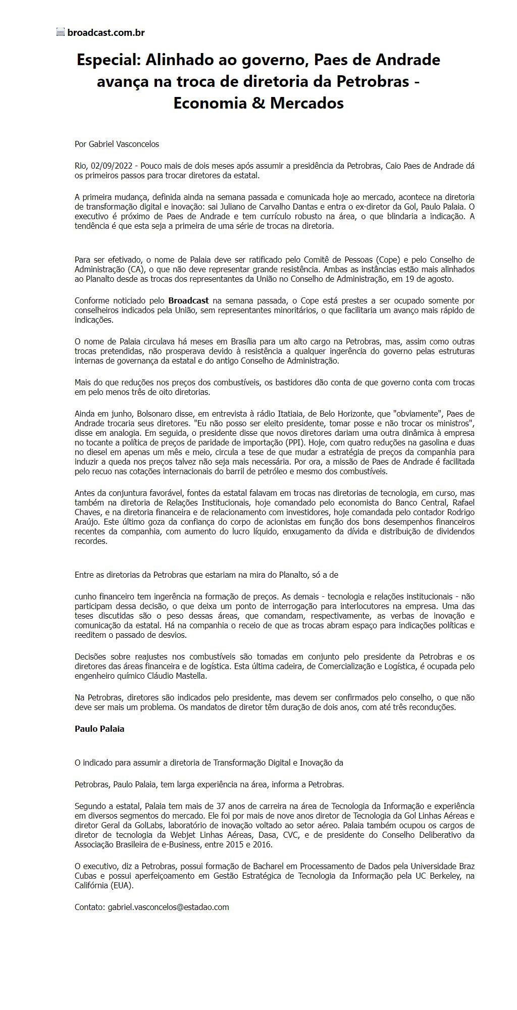 Especial: Alinhado ao governo, Paes de Andrade avança na troca de diretoria da Petrobras - Economia & Mercados