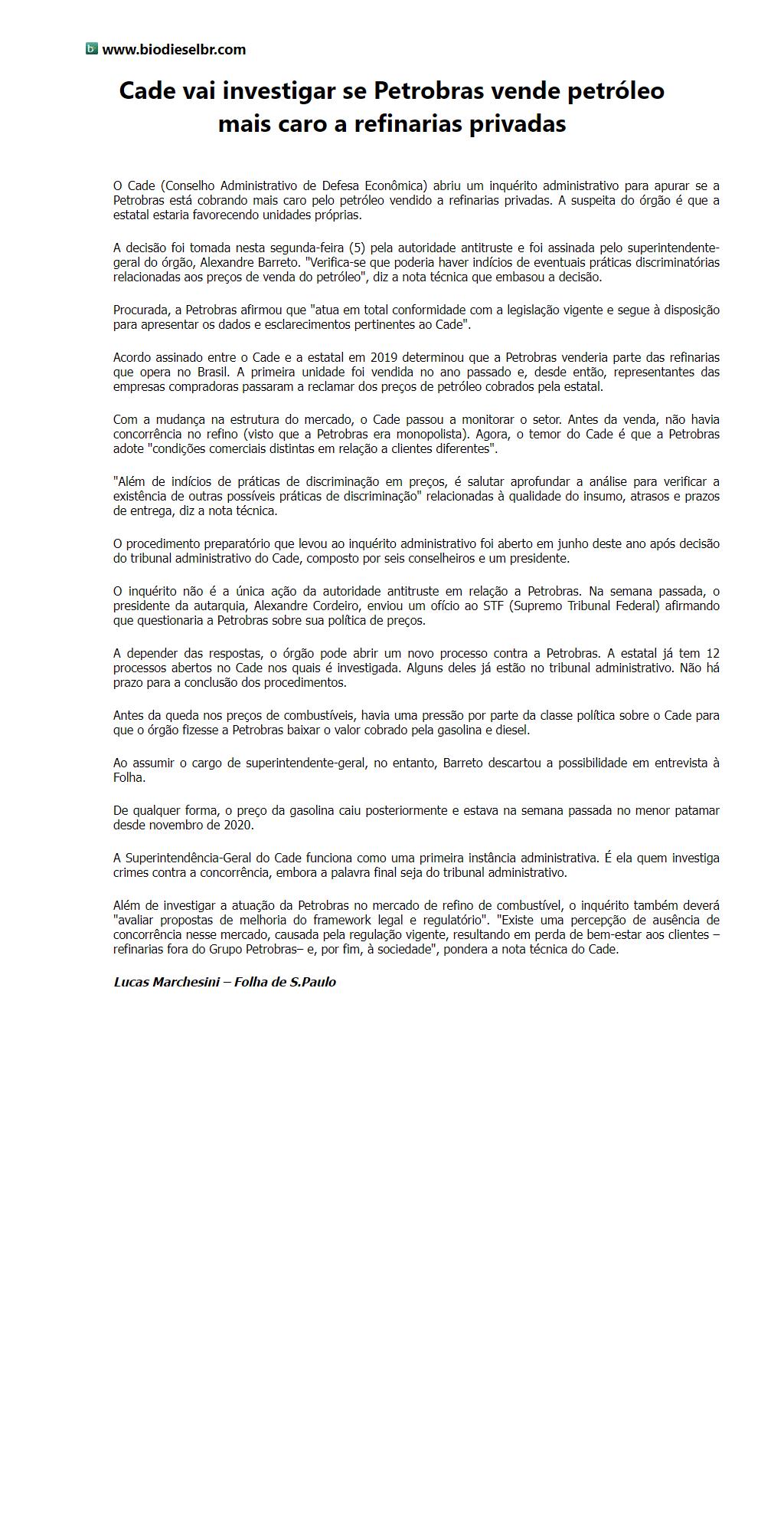 Cade vai investigar se Petrobras vende petróleo mais caro a refinarias privadas