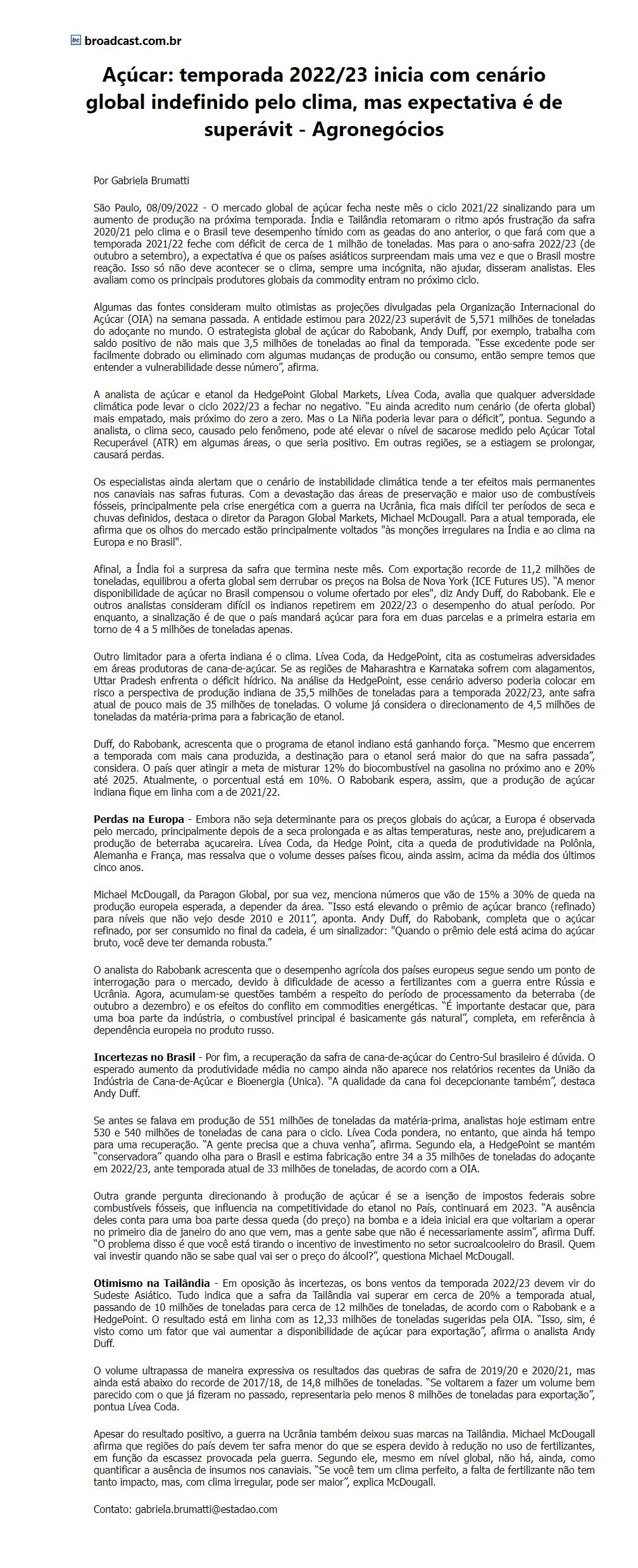 Açúcar: temporada 2022/23 inicia com cenário global indefinido pelo clima, mas expectativa é de superávit - Agronegócios
