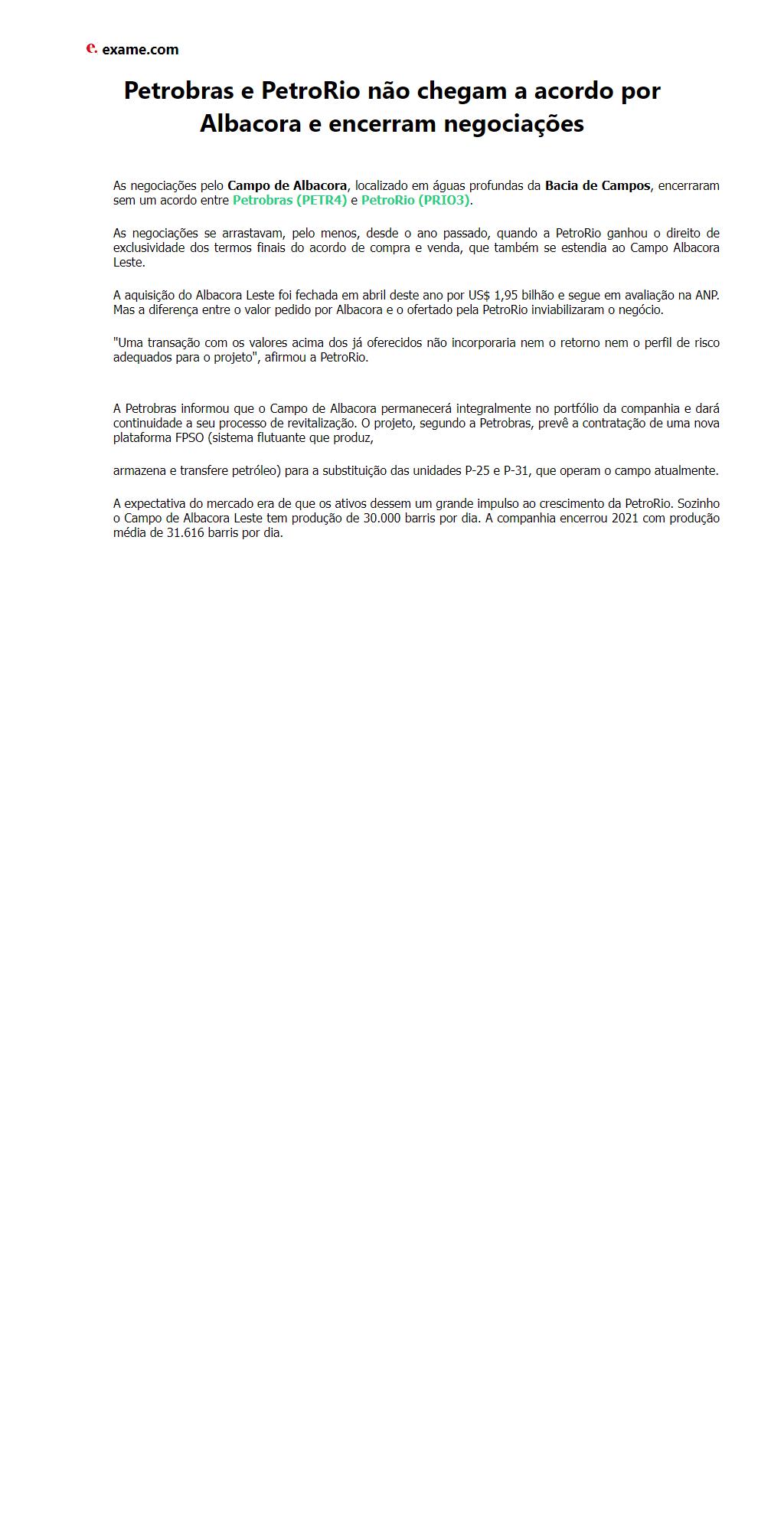 Petrobras e PetroRio não chegam a acordo por Albacora e encerram negociações