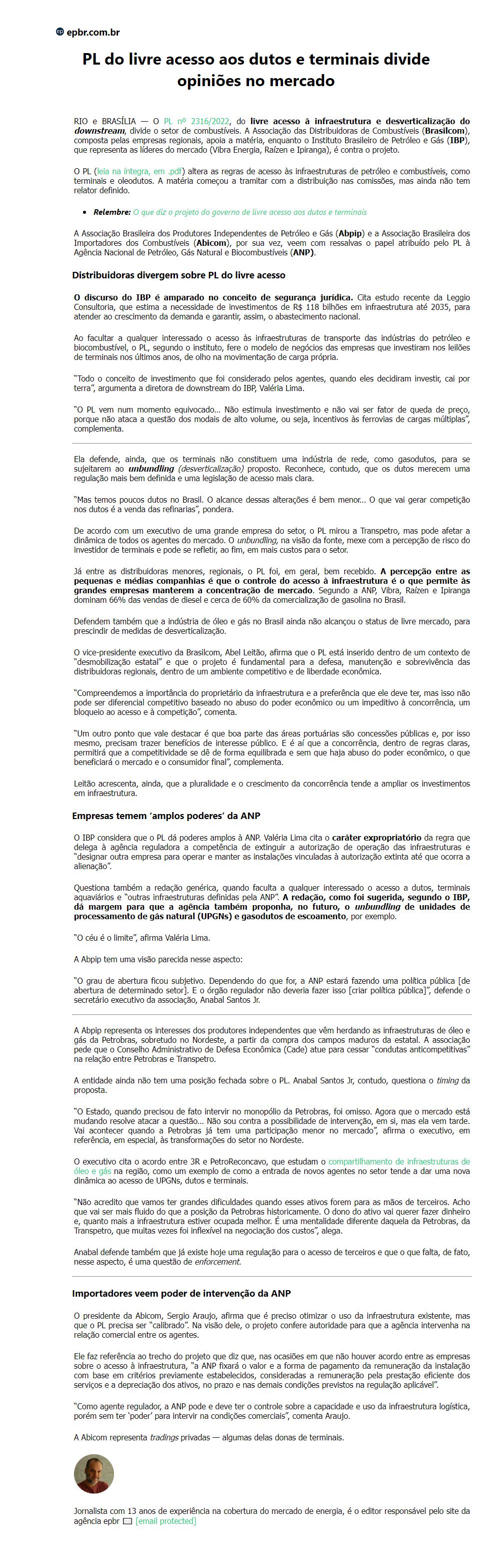 PL do livre acesso aos dutos e terminais divide opiniões no mercado